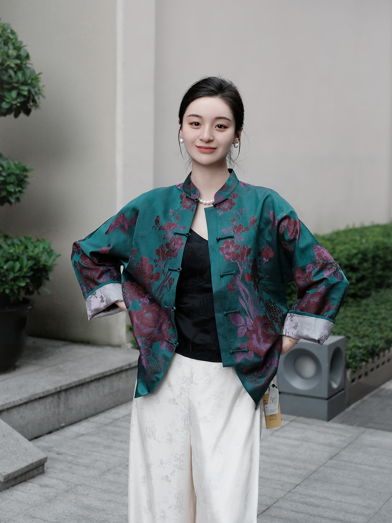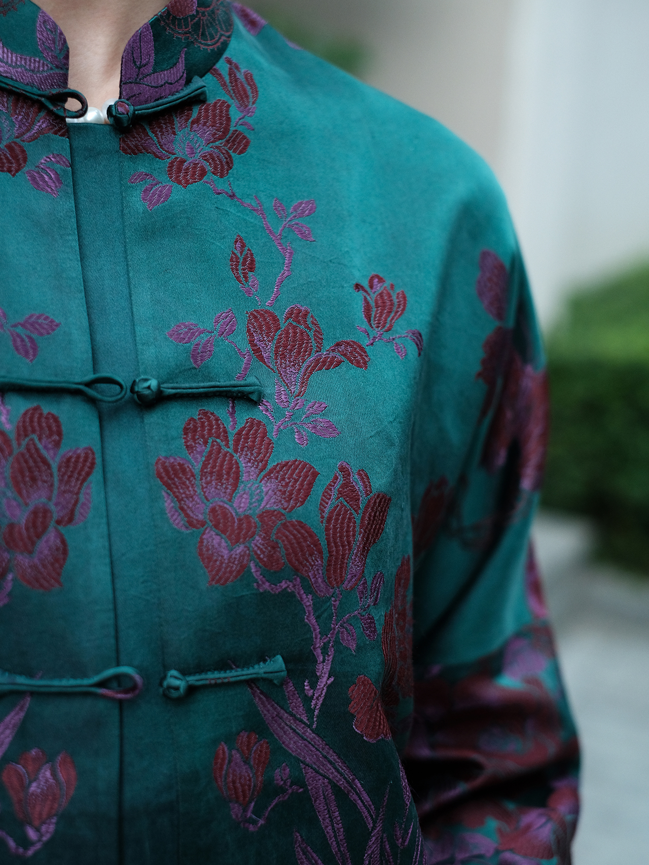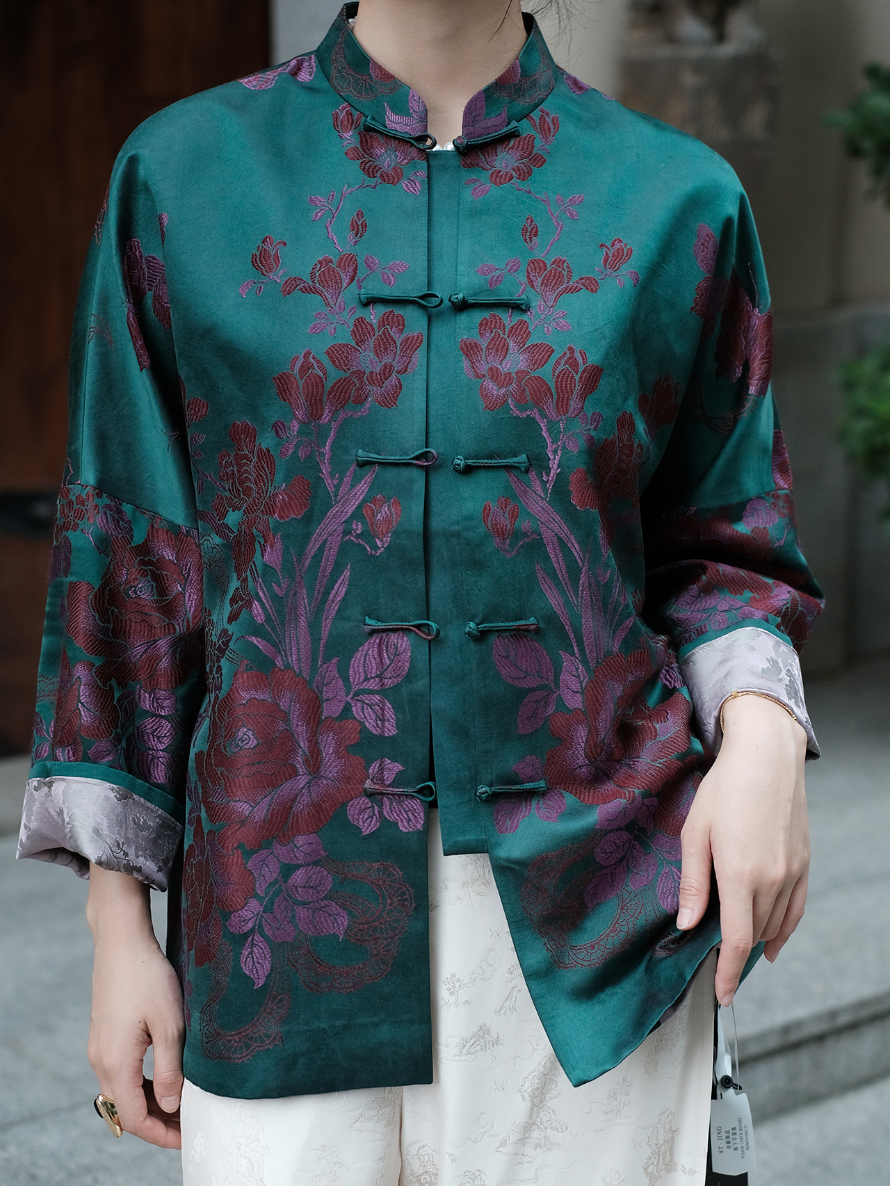 盛唐婧| 重磅桑蚕丝老缎新中式对花外套-湖绿