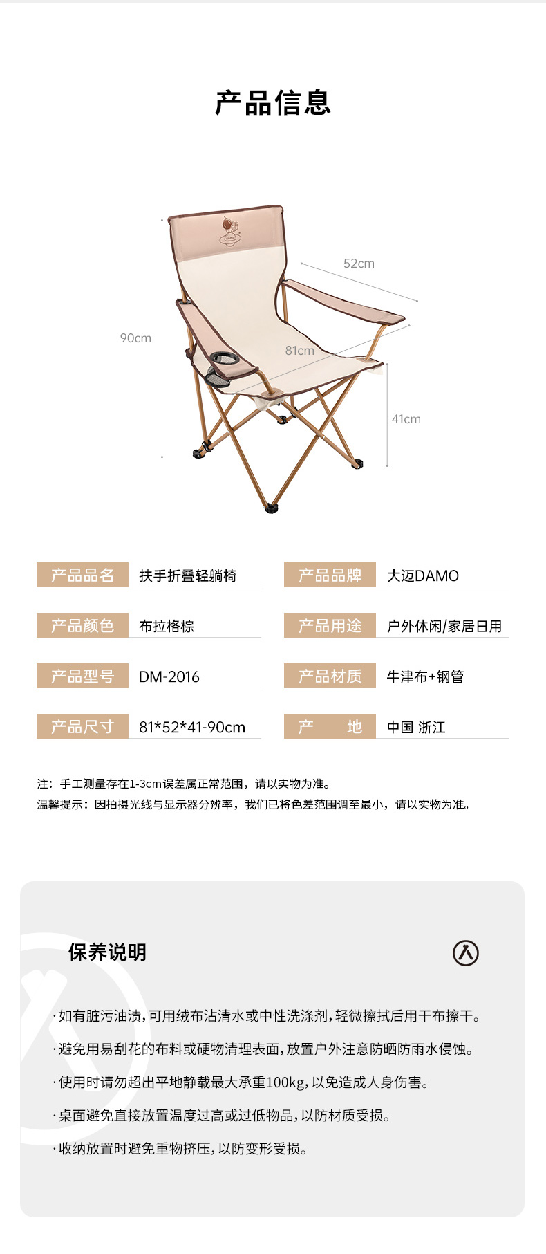 大迈 扶手折叠轻躺椅 / 克米特折叠椅 / 扶手折叠椅 / 轻便折叠靠背椅