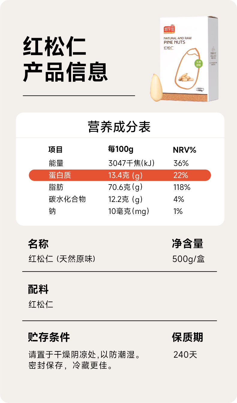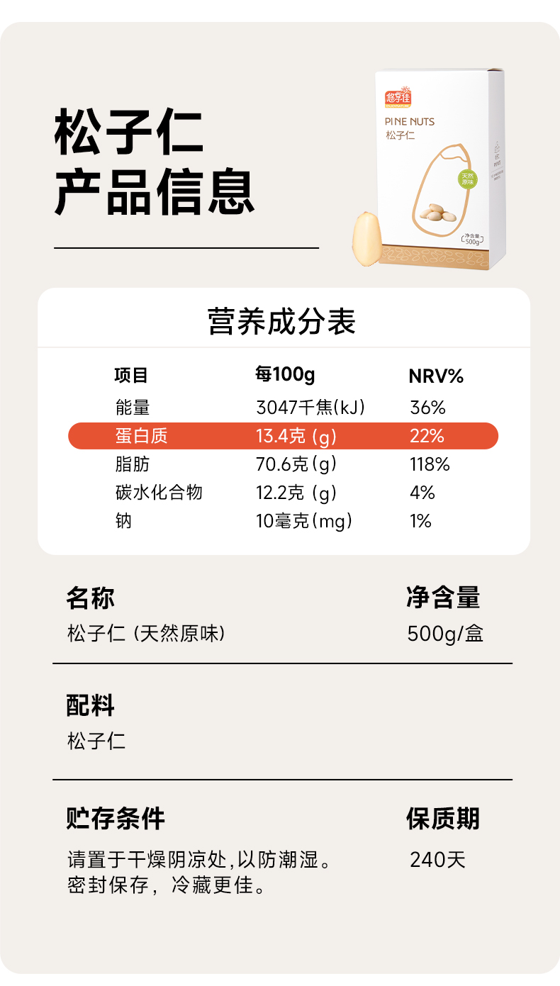 【悠享佳】红松子仁 原味东北特产特价500g装