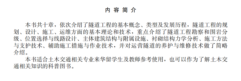隧道工程 交通土建类专业来华留学生专用教材 中国建材工 业出版社