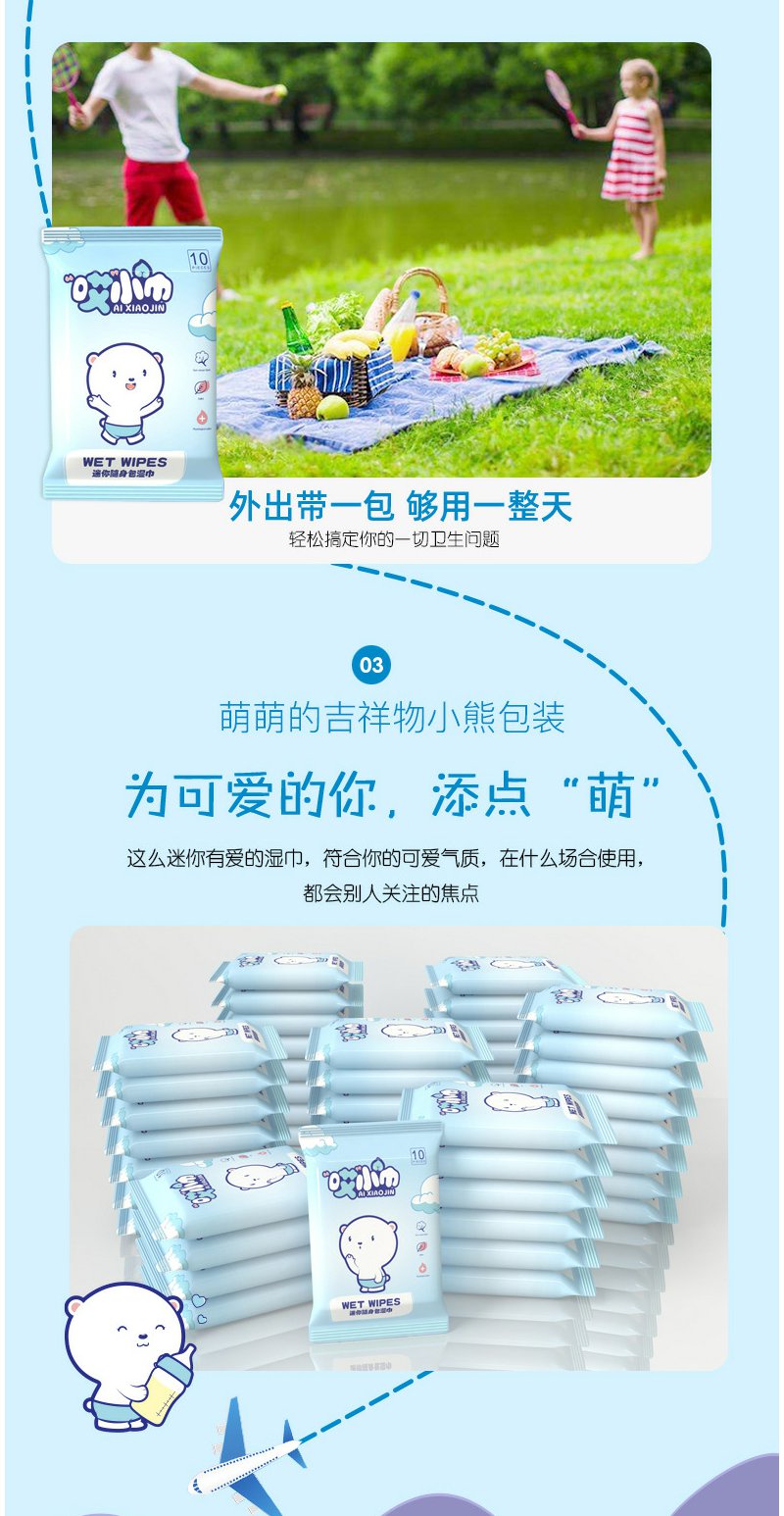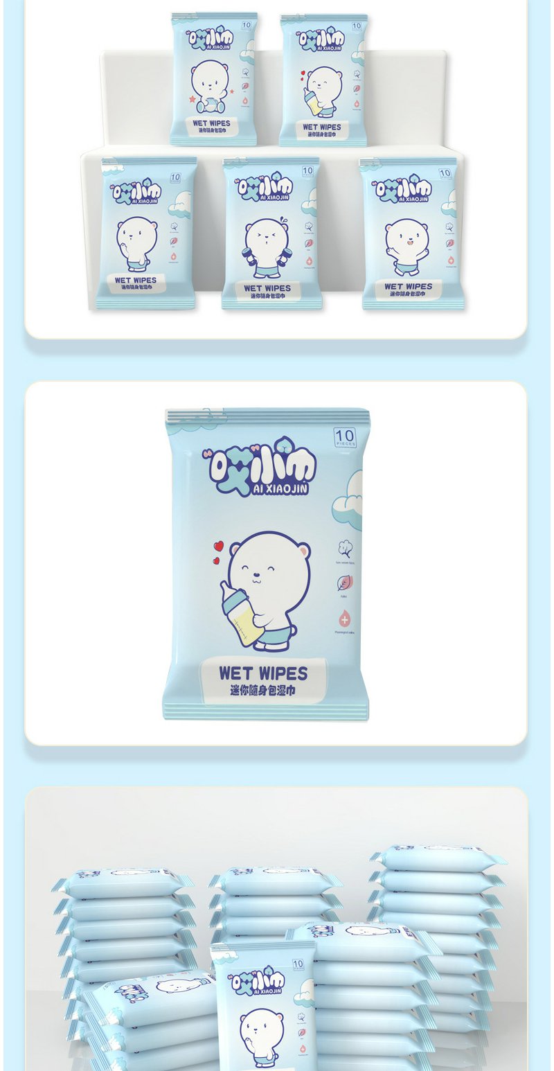 【随身包湿巾】哎小巾 母婴用品婴儿湿纸巾无纺布湿巾纸小包10抽/包