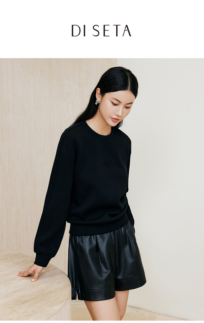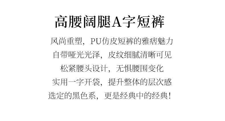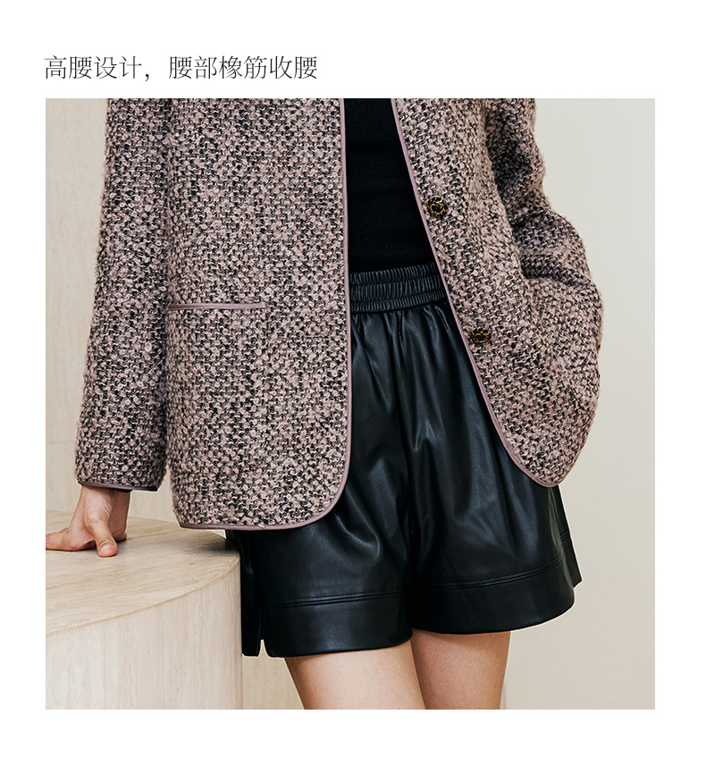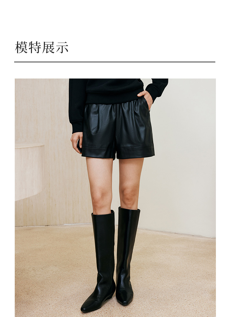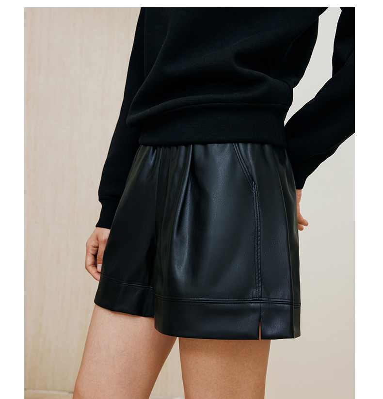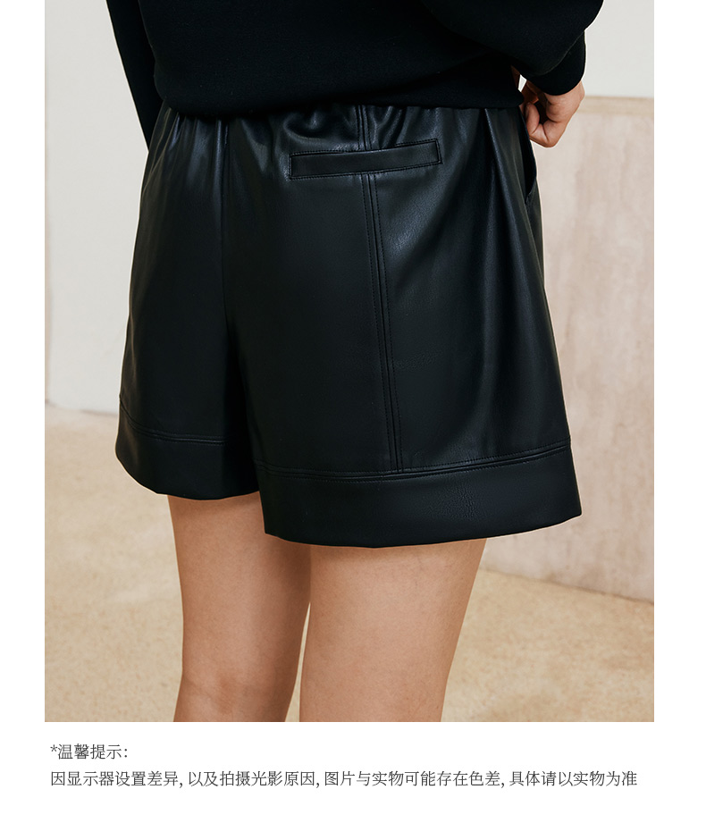 玳莎高腰A仿皮短裤2024冬季新款女装质感时尚肌理感松紧腰休闲裤 ED36101