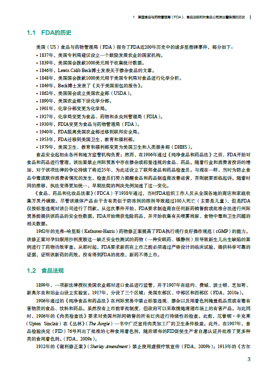 1 美国食品与药物管理局(FDA)、食品法规和对食品公司发出警告信的历史