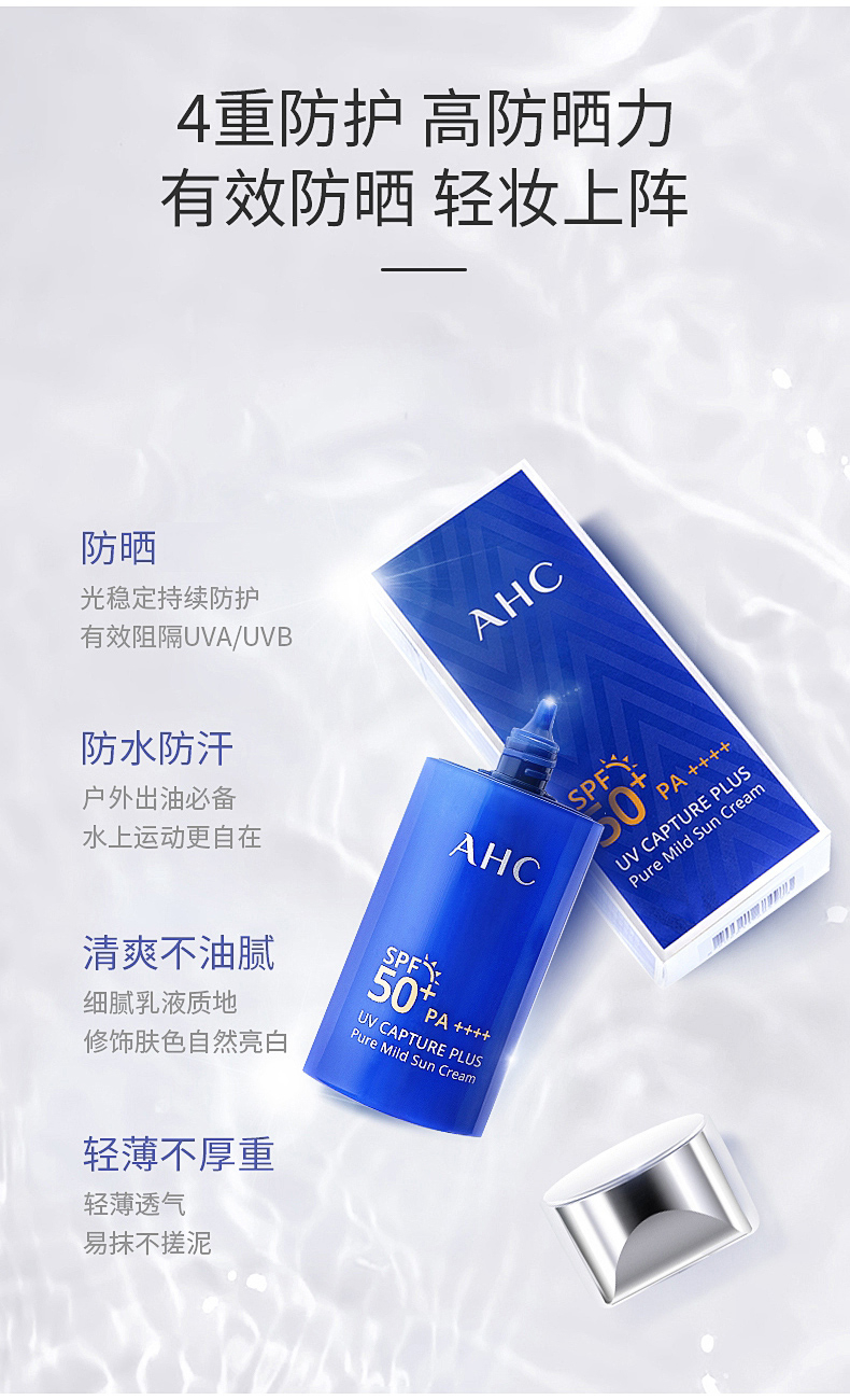 【一般贸易进口中文标】韩国进口 AHC 小蓝瓶防晒霜隔离霜防紫外线清爽不油腻二合一50ml