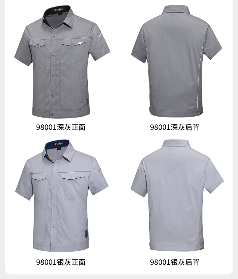 高级弹力夏季短袖工作服套装男薄款防静电车间厂服工装劳保服定制