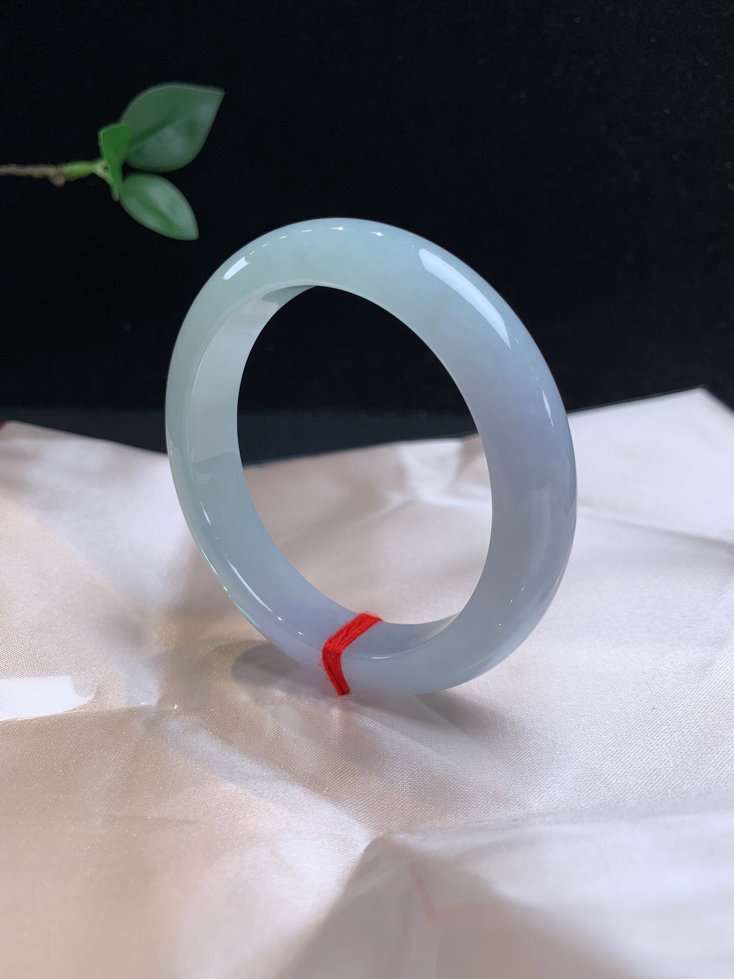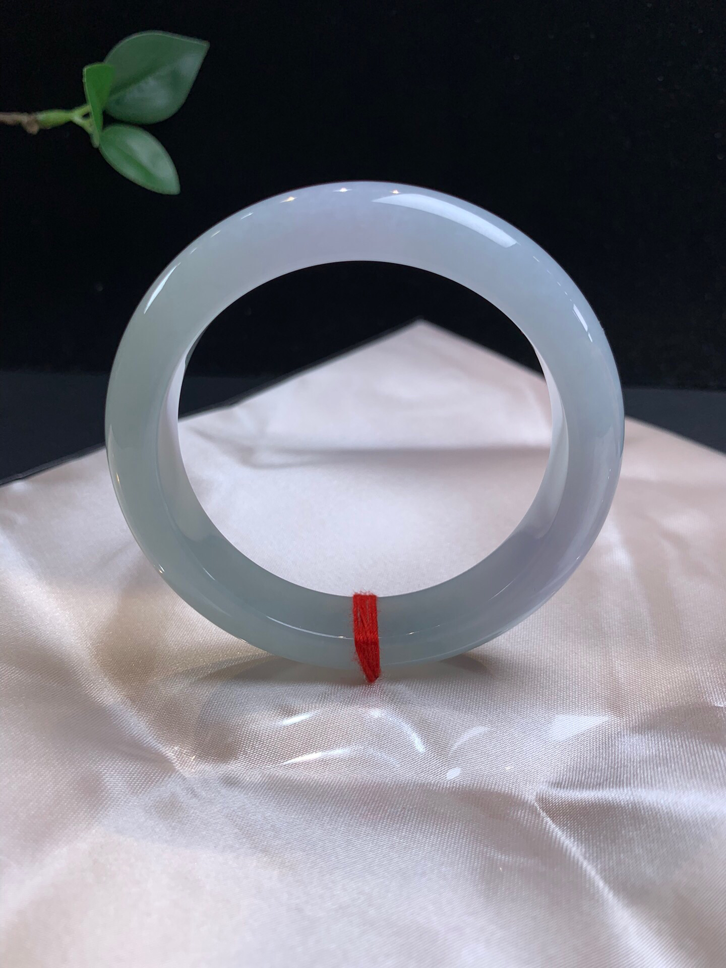 611385,54.7淡春彩正圈手镯,12.7-8mm,一截浅浅的蓝底,一截淡紫,整体底妆均匀干净、润润的,完美。💰16300 #优石客珠宝