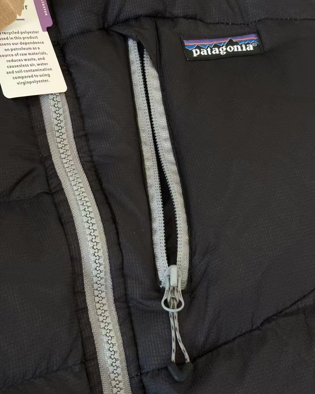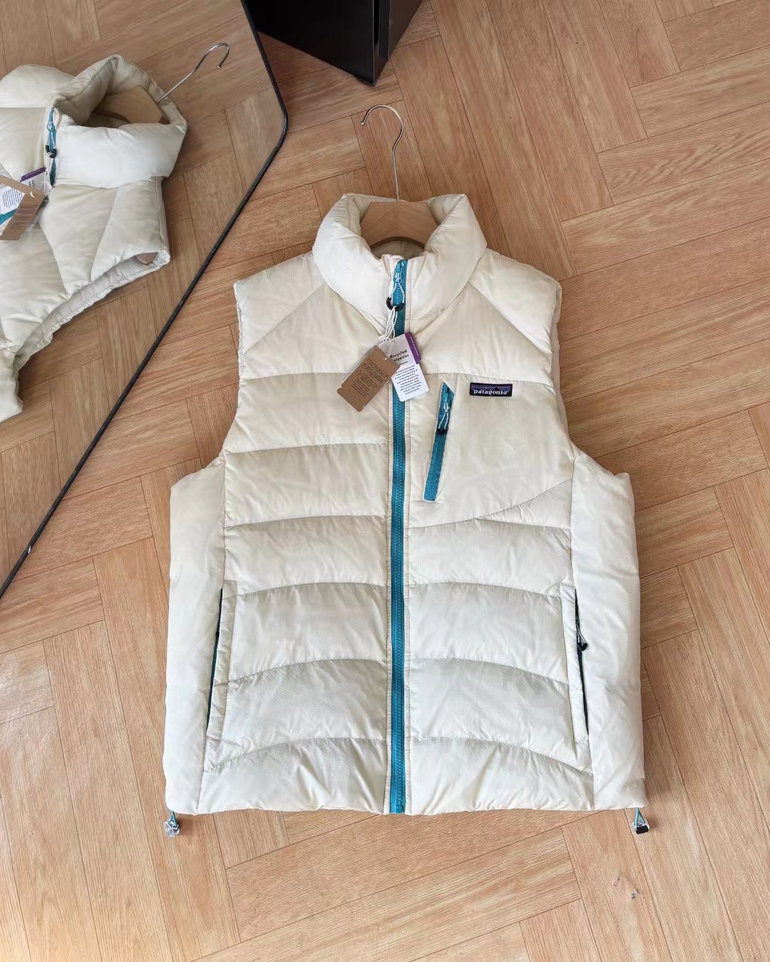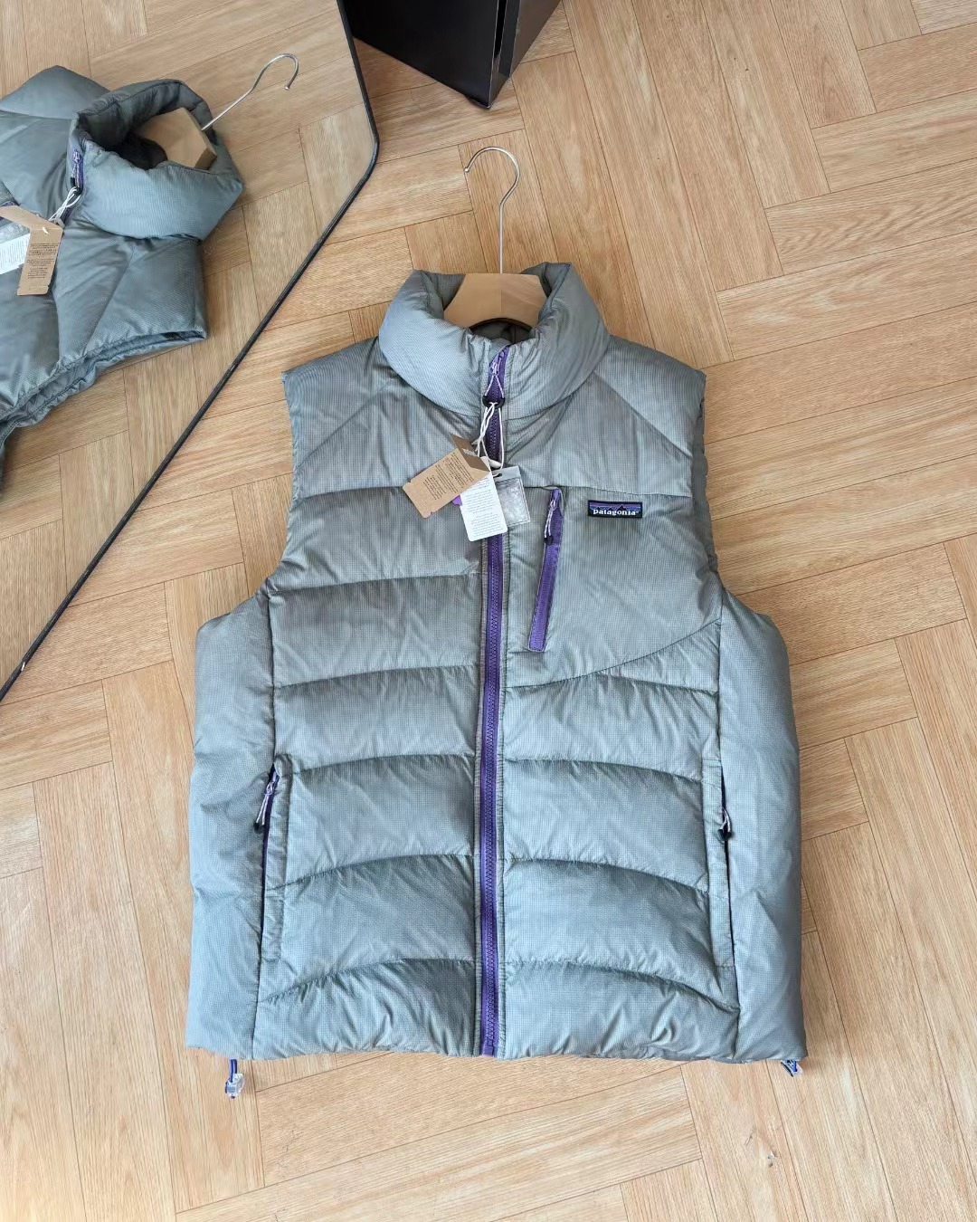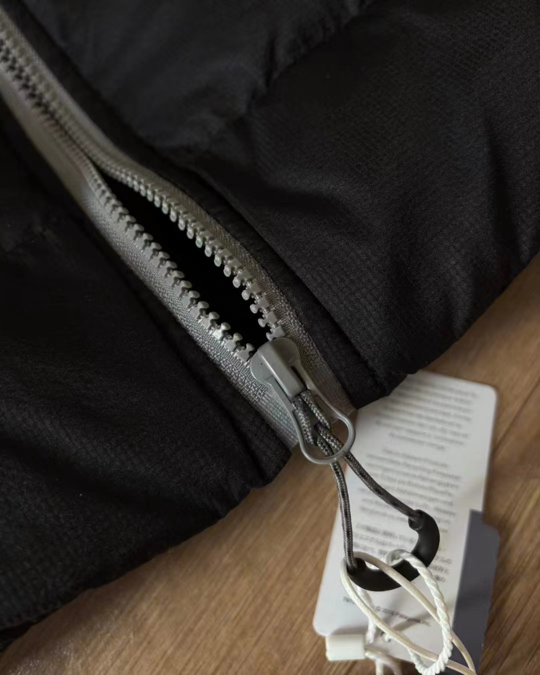 冬季日系三色90白鸭绒情侣款马甲,国标90%绒子含量,650+蓬松鸭绒,属于高蓬松度保暖材料,轻便且聚热锁温。外层是NetPlus再生尼龙(由回收渔网制成),带无氟防泼水涂层(DWR),兼具抗撕裂、防风、轻度防泼溅的特性;内衬为防钻绒面料,常规/修身款(新款更贴合身形),男女同款,可作情侣穿搭,有黑、灰、米白等多色可选。立领+拉链防风襟:领口有拉链“车库”设计,避免拉链磨下巴;2个侧缝拉链暖手袋+1个内侧拉链收纳袋(可当压缩袋);下摆抽绳可收紧,弹性包边袖口,增强防风性;