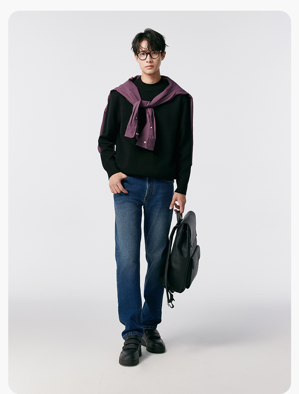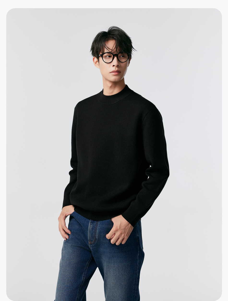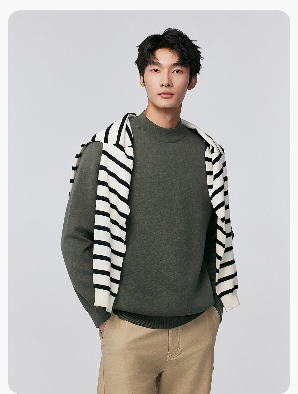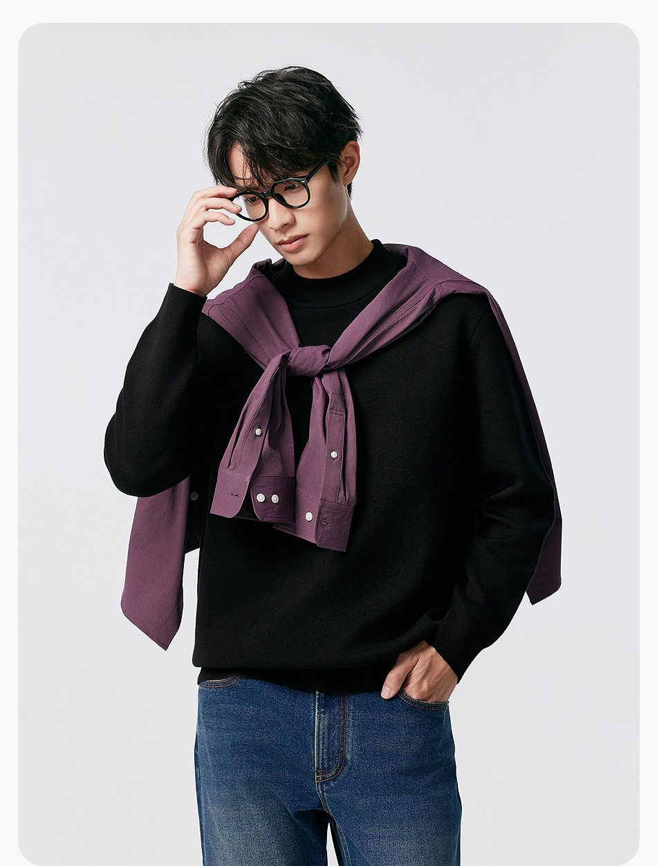 棉仓366801003-全棉磨毛绒感圆领长袖T恤