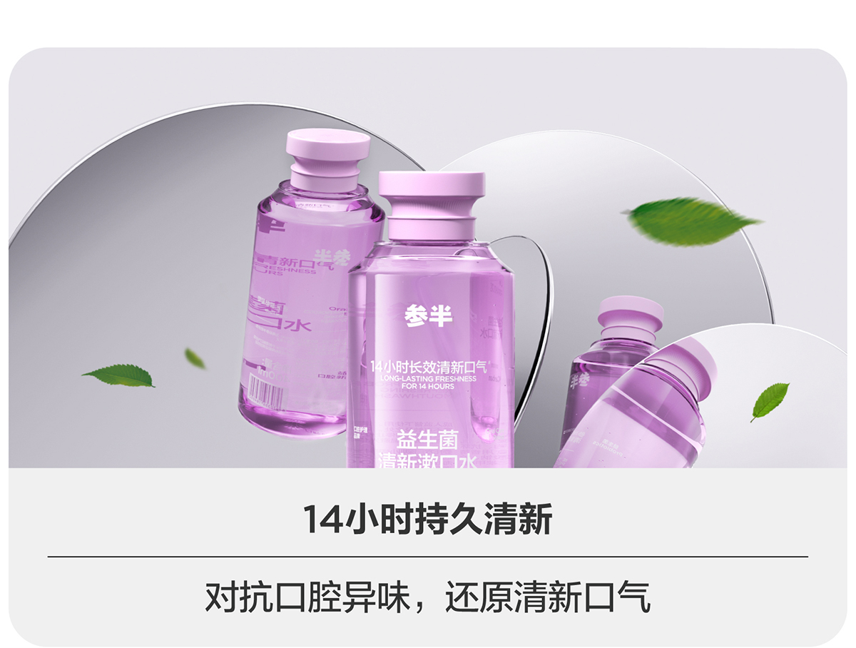 - 参半旗下产品已覆盖牙膏、漱口水、口腔爆珠、口腔喷雾等多个类目,为用户提供了精细化的口腔护理解决方案。