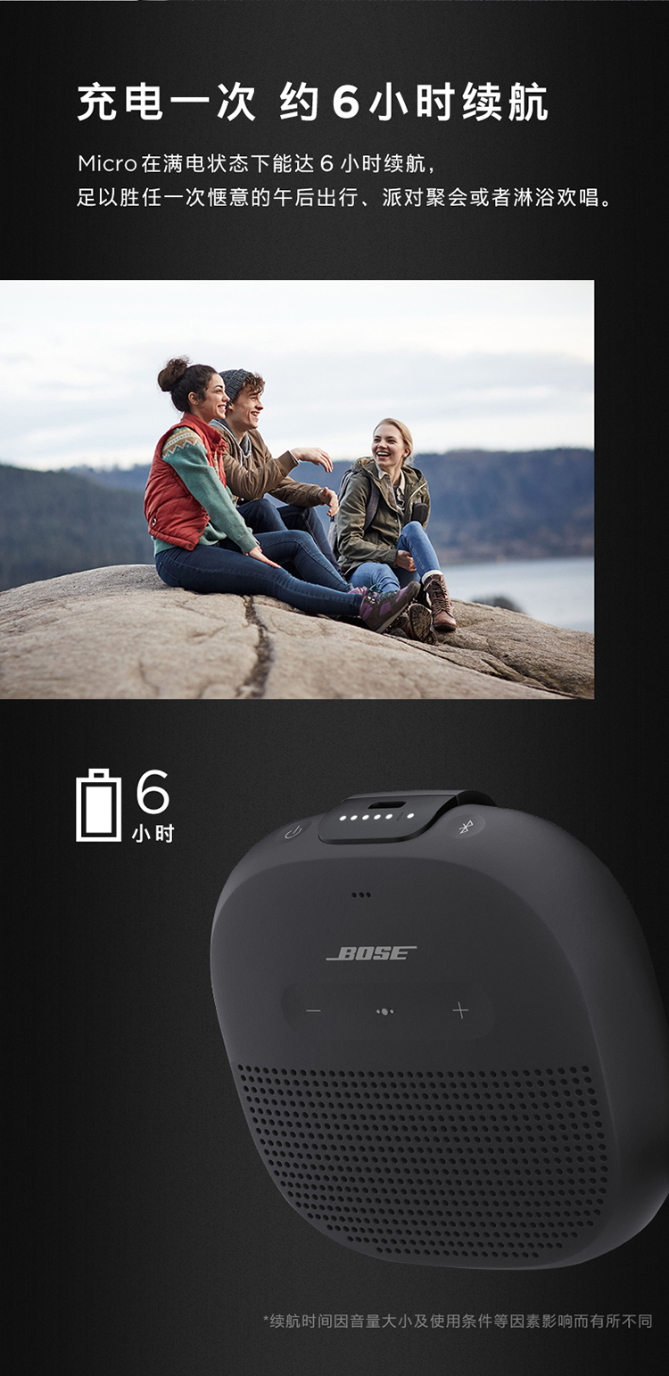 配备可充电锂离子电池,支持长达 6 小时的播