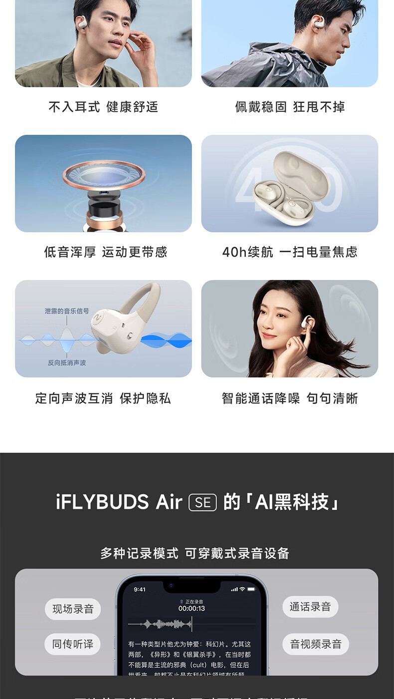 科大讯飞开放式办公耳机iFLYBUDS Air(SE无挂脖款)