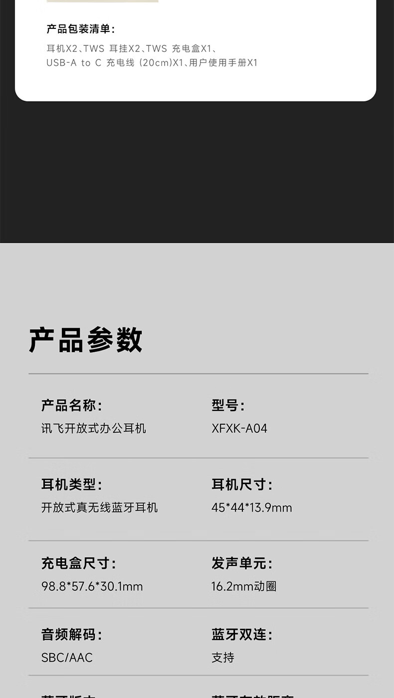 ● 耳机类型:开放式真无线蓝牙耳机