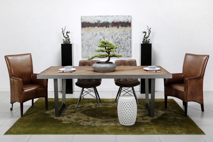 新做柚木+铁腿原木家具4634餐桌会议桌桌子QQ18110005 Newly made Teak wood+iron Table