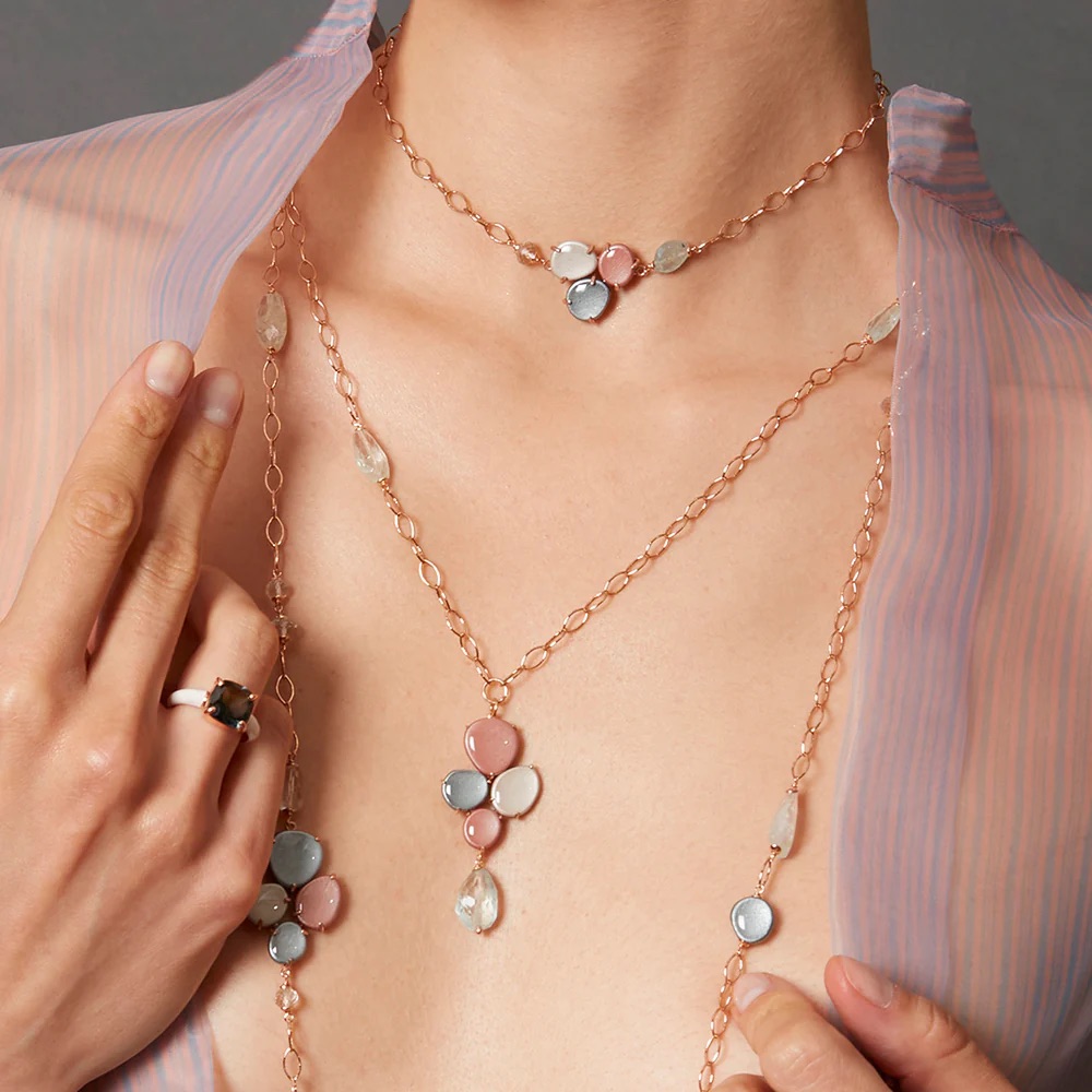 北京仓|ROSSO PREZIOSO-LADYLIKE GLACIER PENDANT-冰花 珐琅 海蓝宝 吊坠项链[意大利设计师]