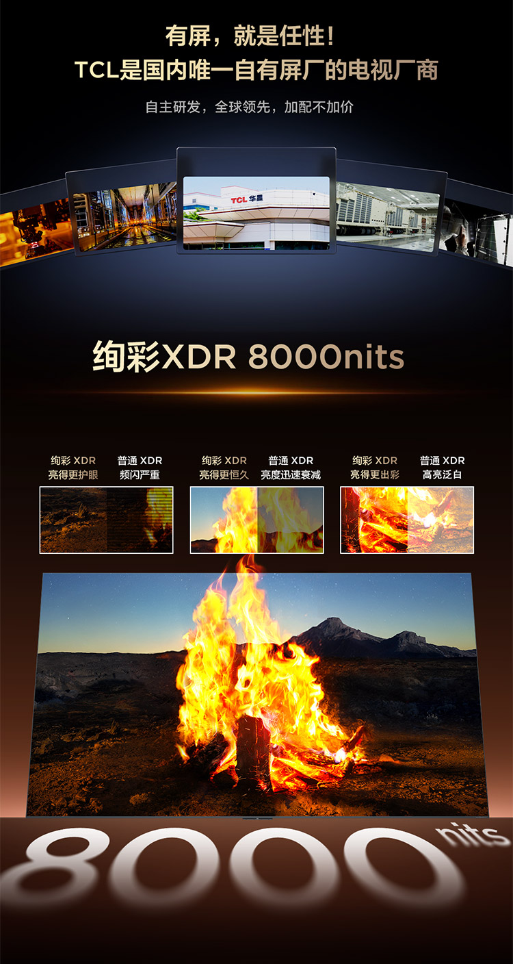 TCL电视 75Q10M Pro 75英寸 SQD-Mini LED 100%全局高色域 超级蝶翼华曜屏 万象分区 绚彩XDR 8000nits