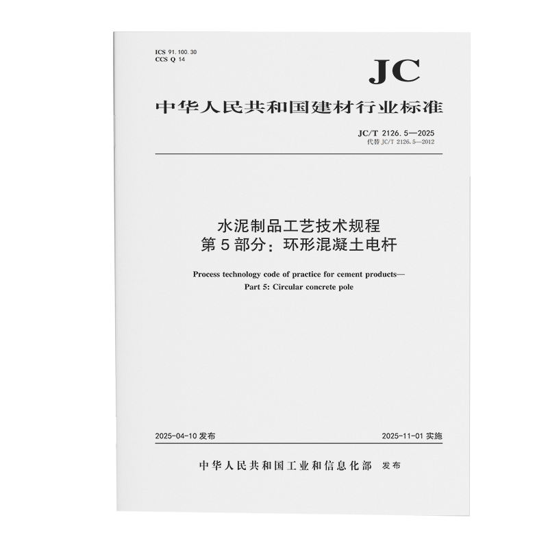 水泥制品工艺技术规程 第5部分:环形混凝土电杆(JC/T2126.5-2025代替JC/T2126.5-2012)