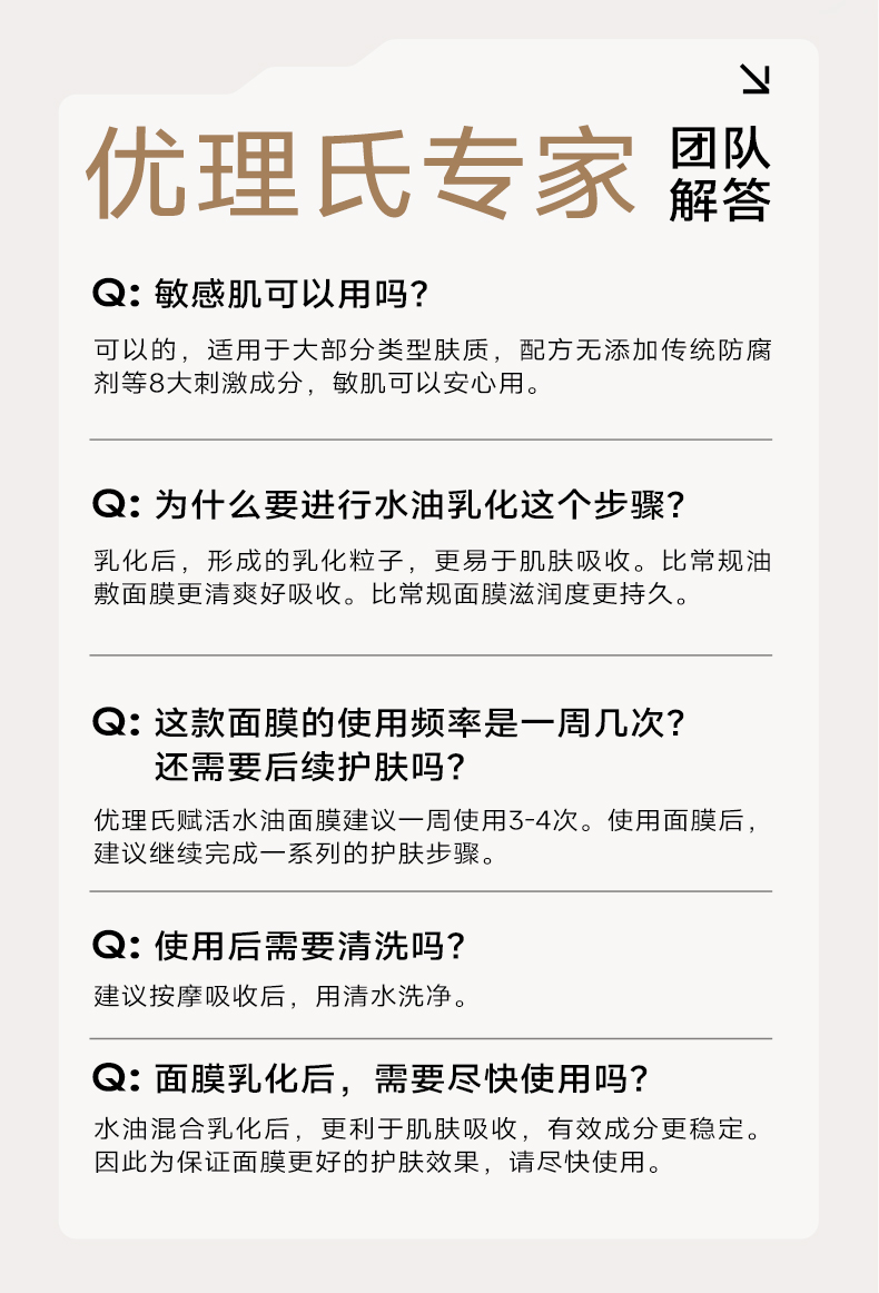 【紧致抗衰】优理氏赋活水油敷面膜补水保湿舒缓抗皱紧致抗衰