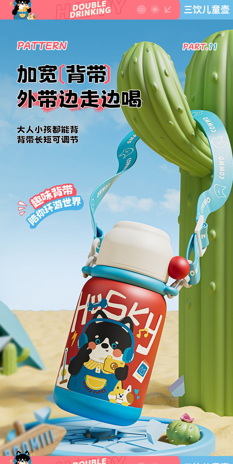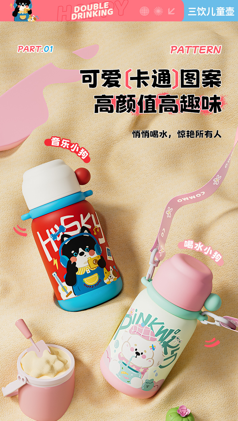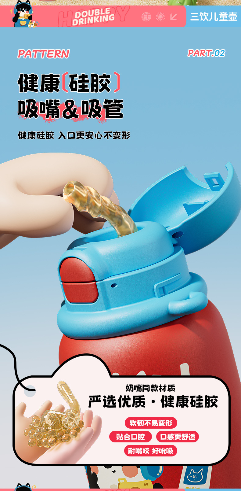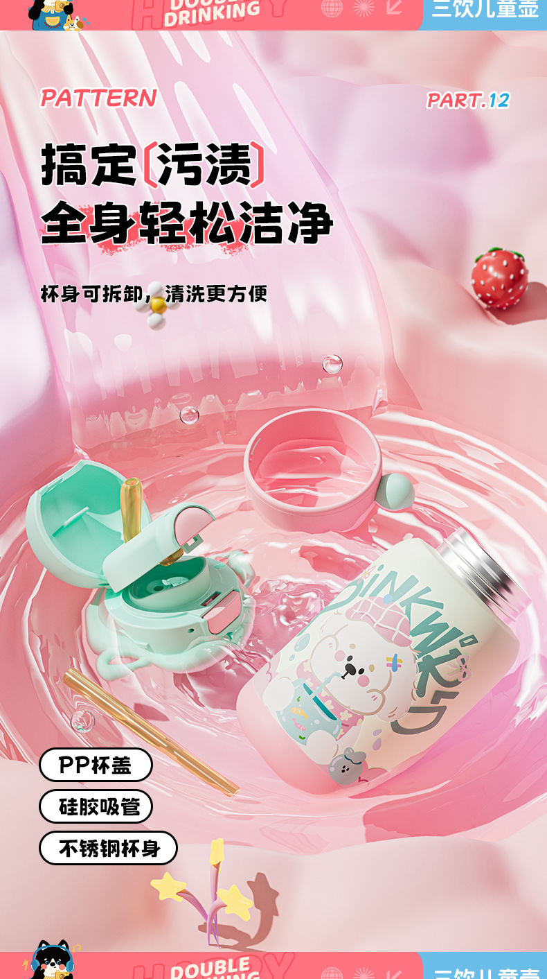 开学必备!新款316不锈钢萌趣儿童保温杯可爱学生大容量吸管杯户外便携水杯