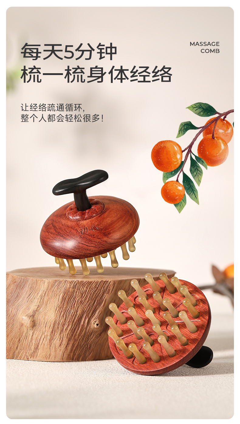 初心| 五指球齿按摩梳黑檀绿檀