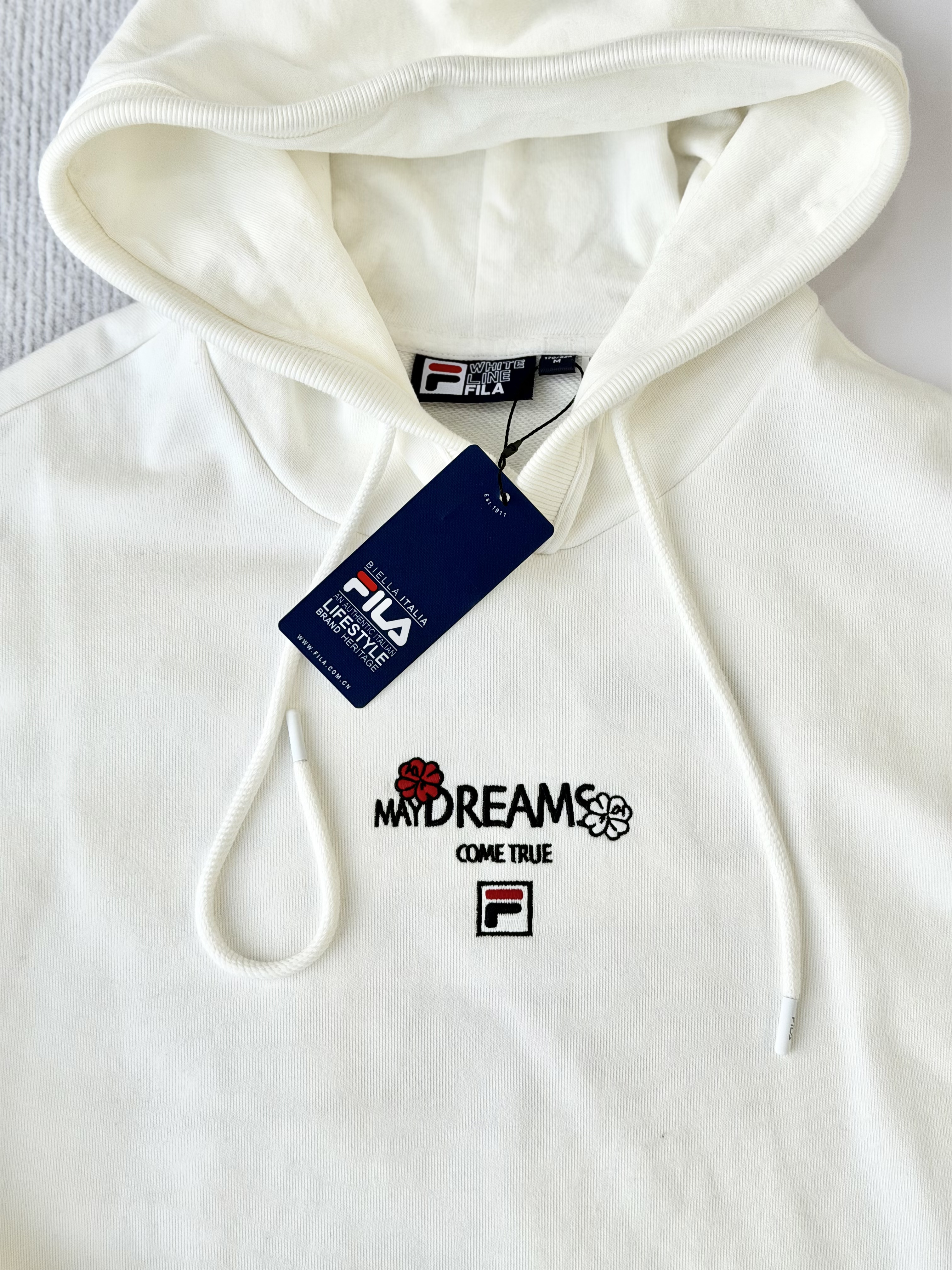 前胸字母,传递祝福,(愿梦想成真)。