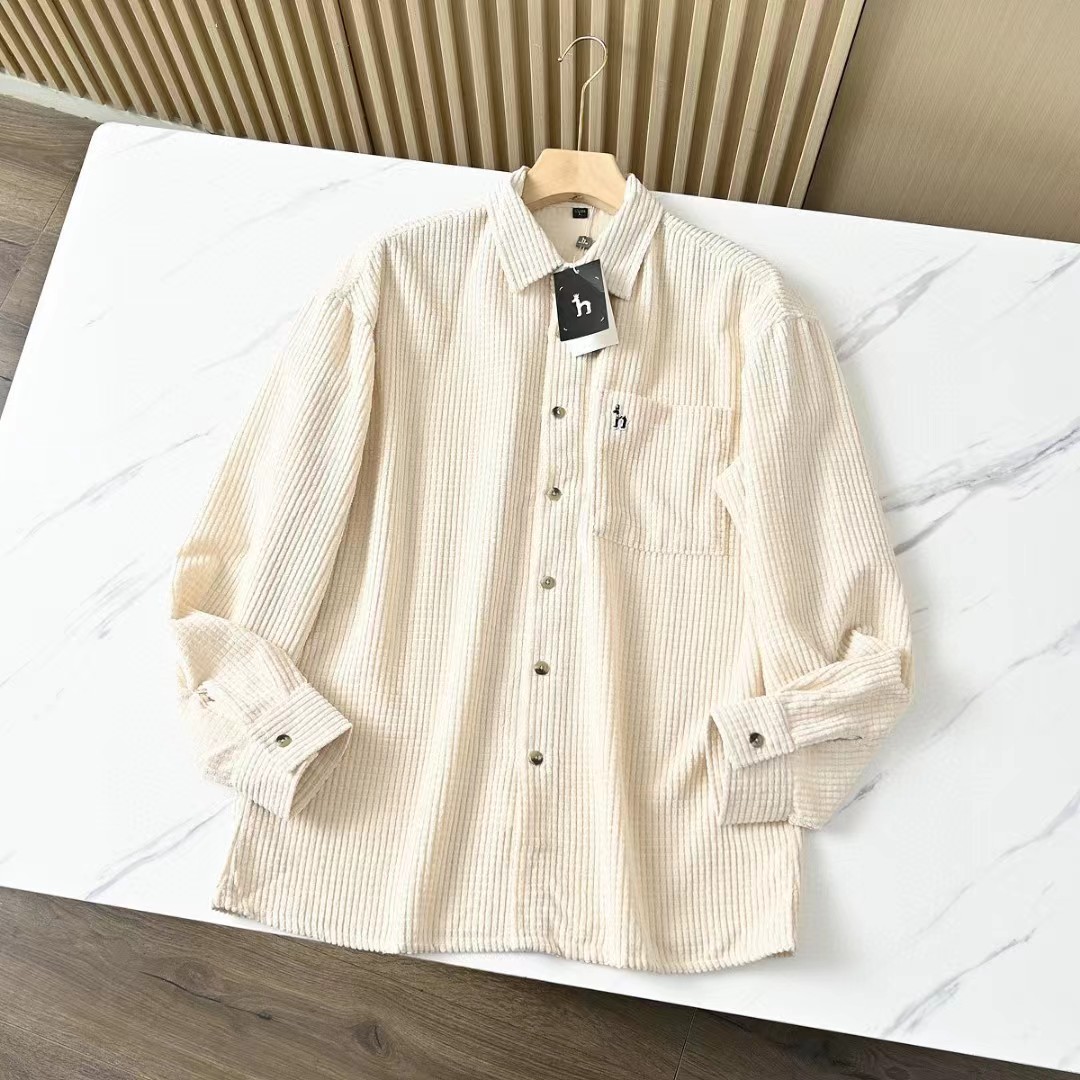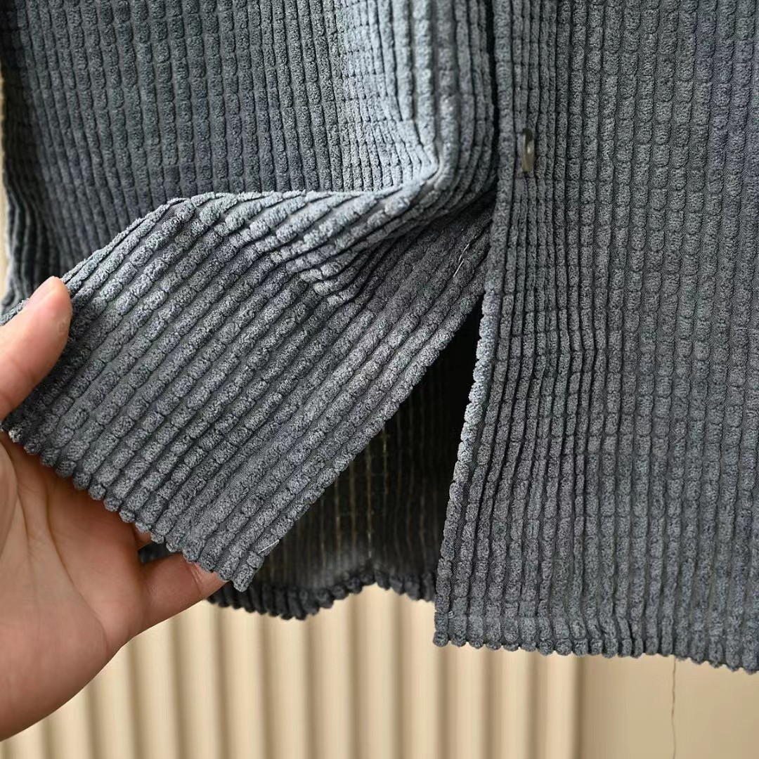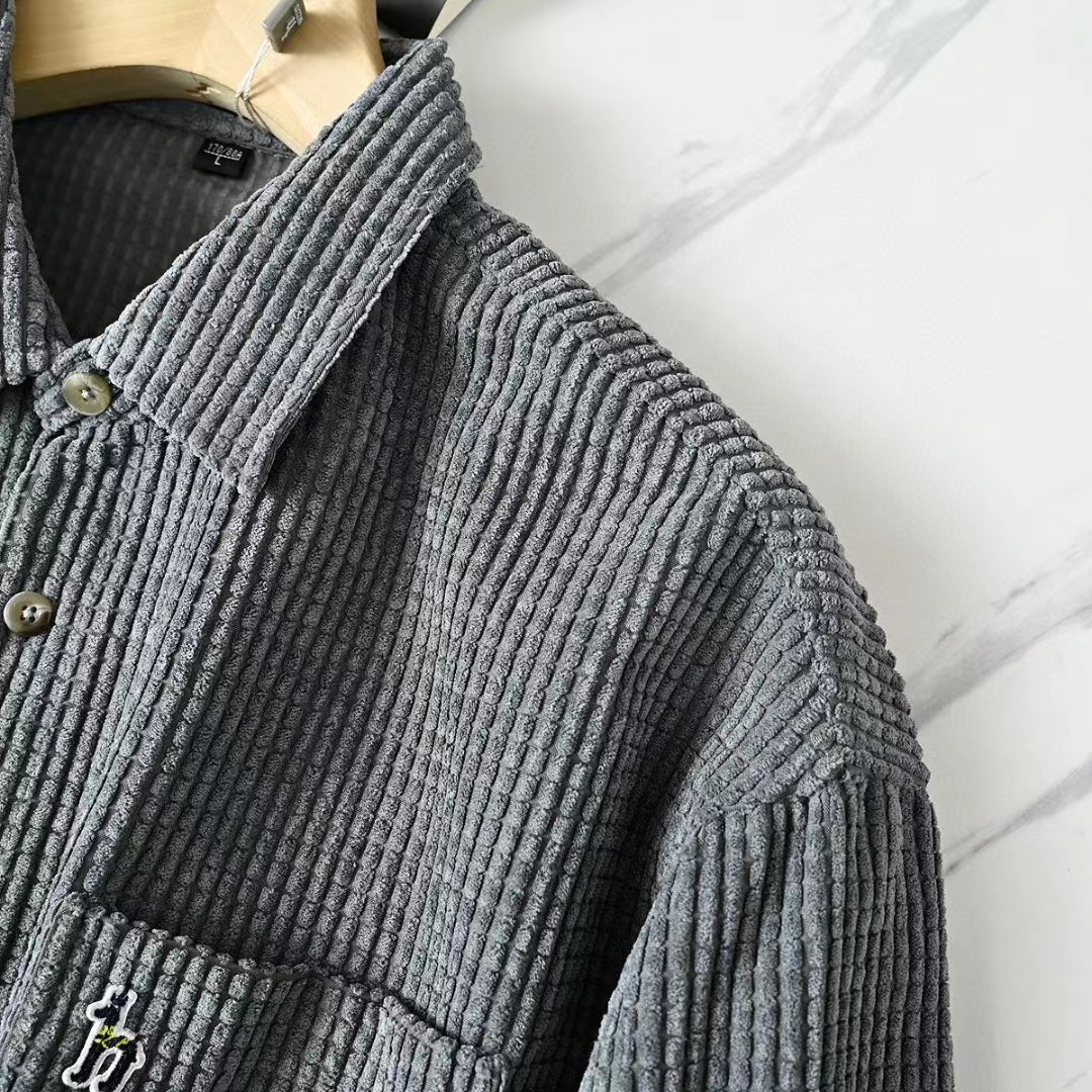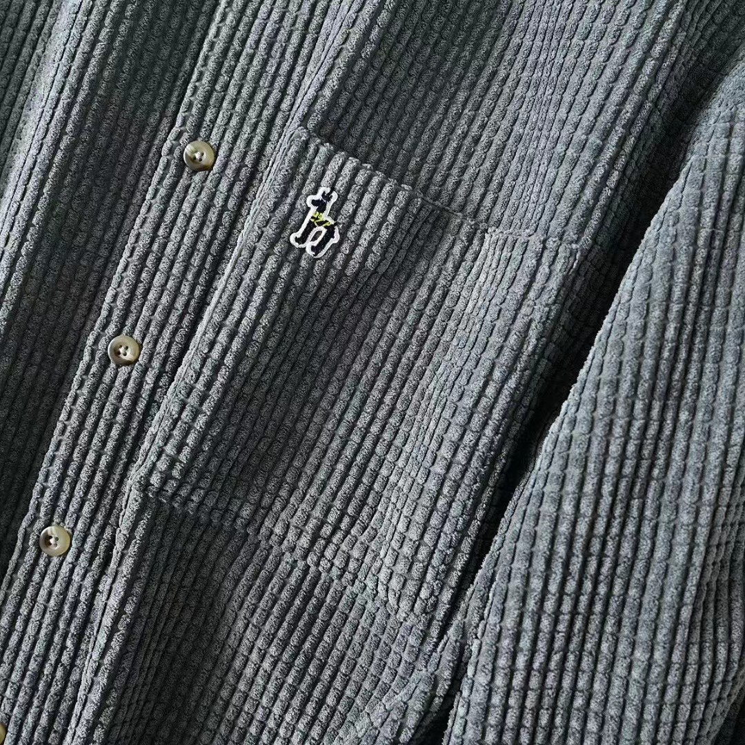 春秋新款男士灯芯绒复古纯色宽松条纹衬衫,修身款休闲衬衫时尚灯芯绒设计上身的效果真的是非常的wan美的,果断入手看看咱们的价钱我很骄傲,看一下细节图,里面的辅料还是做工都是超棒!厚度适中,绒毛耐磨,手感柔软。春秋都可以穿。合体版型的剪裁,贴身非常舒适.