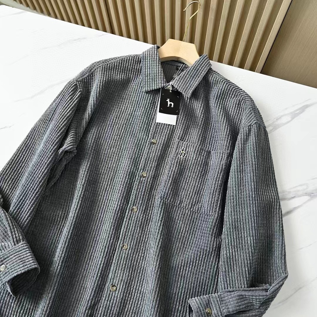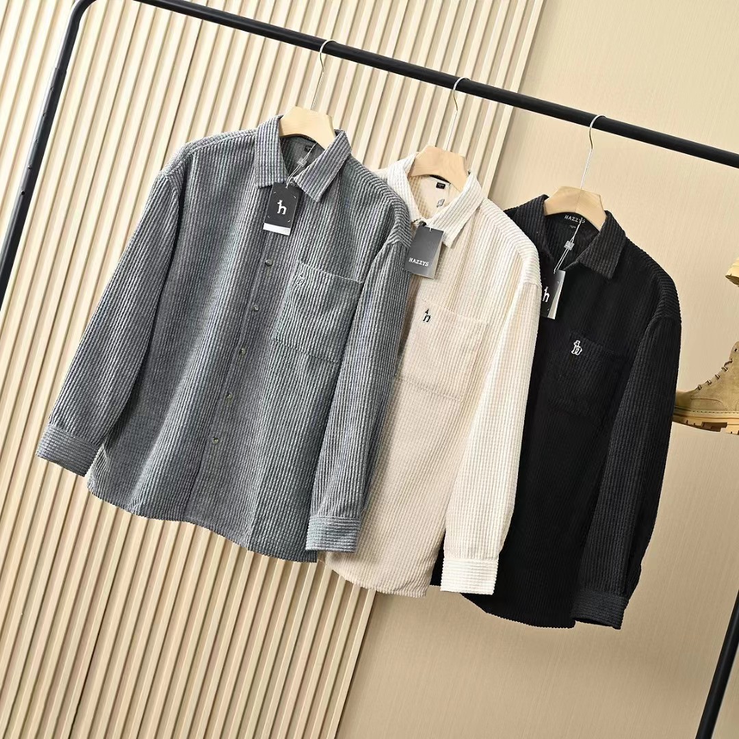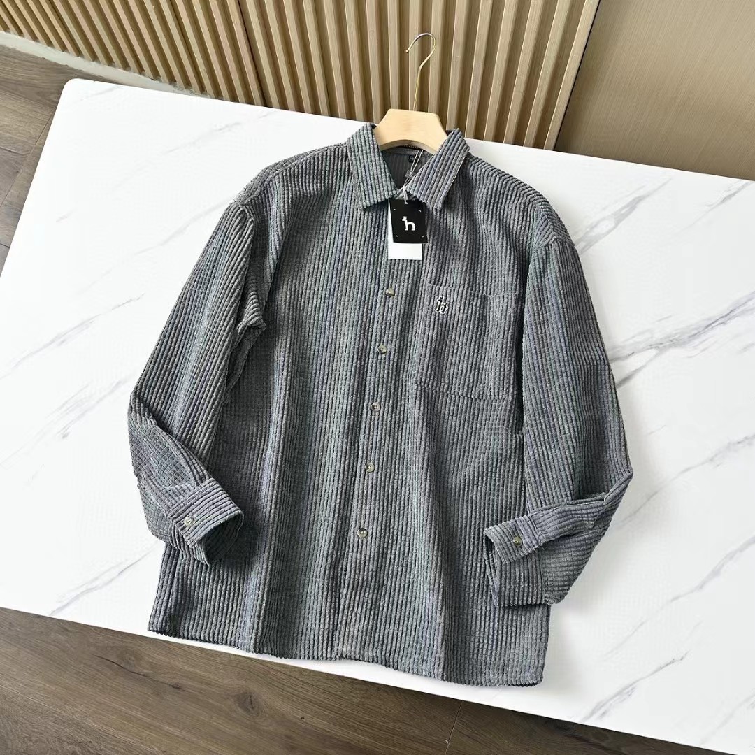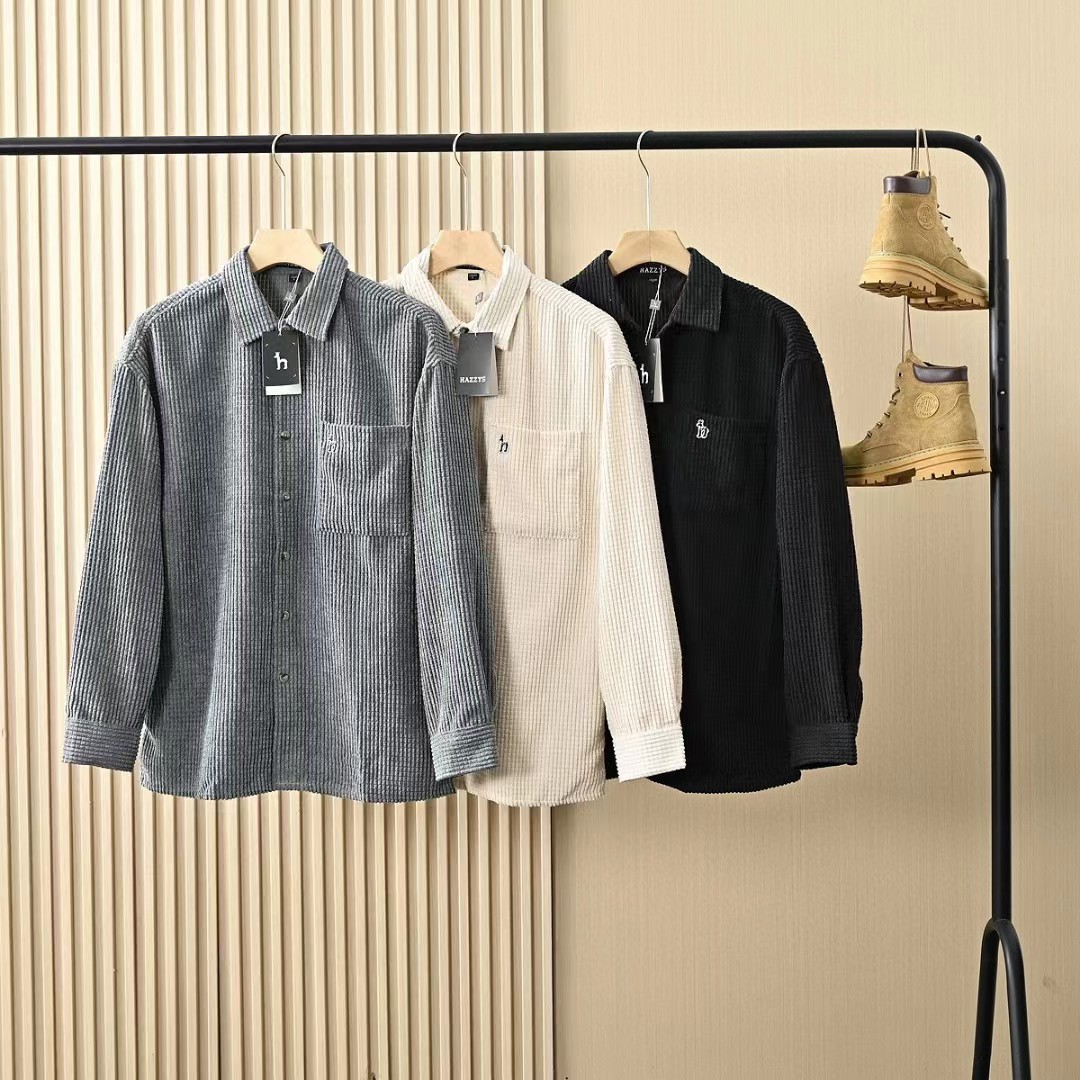 春秋新款男士灯芯绒复古纯色宽松条纹衬衫,修身款休闲衬衫时尚灯芯绒设计上身的效果真的是非常的wan美的,果断入手看看咱们的价钱我很骄傲,看一下细节图,里面的辅料还是做工都是超棒!厚度适中,绒毛耐磨,手感柔软。春秋都可以穿。合体版型的剪裁,贴身非常舒适.