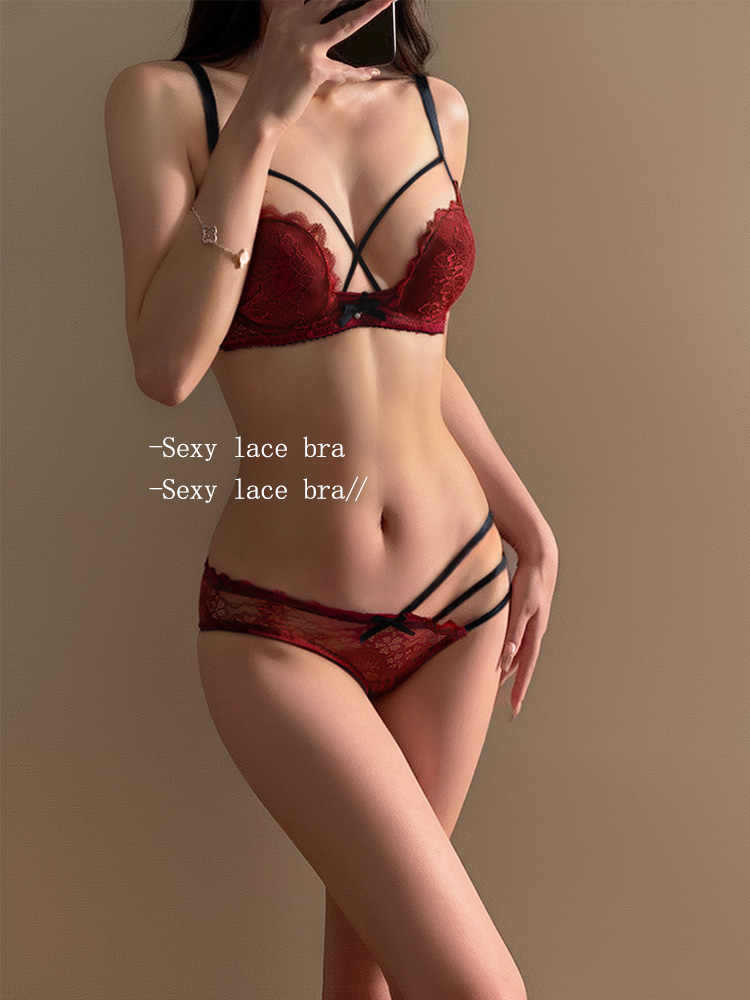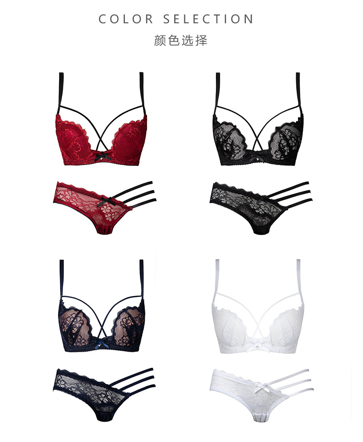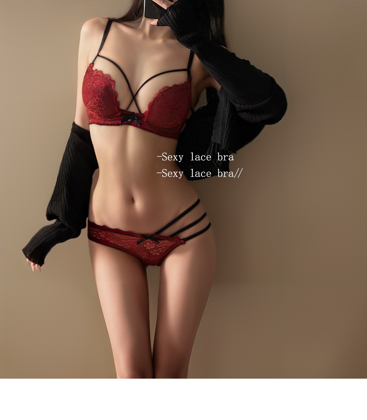 【性感纯欲❗️蕾丝上托文胸套装】蝴蝶结加小钻石点缀,真的美爆了❗️新年蛇年本命年情趣内衣女镂空条纹小胸聚拢收副乳