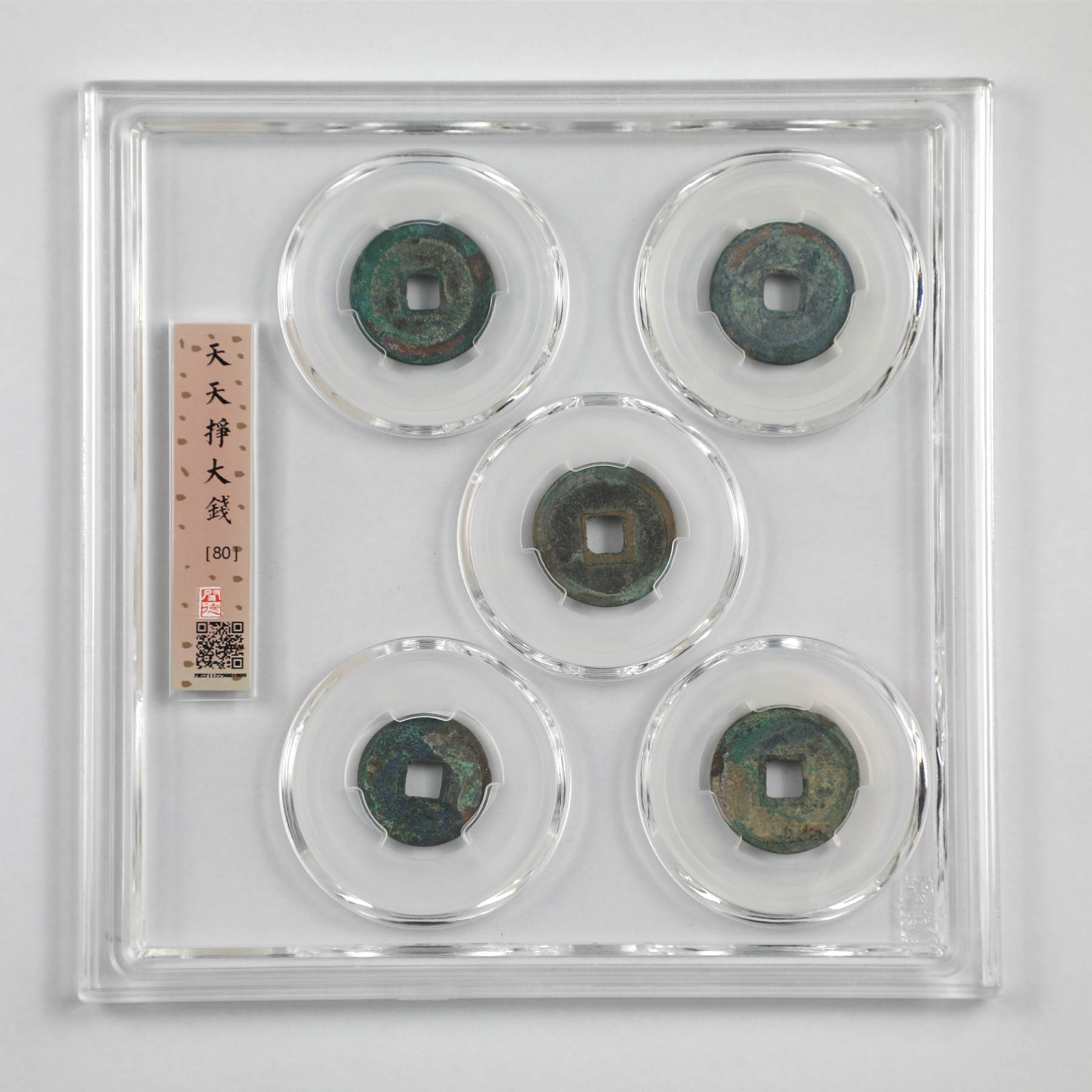 天禧通宝、天圣元宝、政和通宝、大观通宝、乾元重宝,简称“天天政大乾”,寓意婚恋美满、日进斗金、富贵永吉、五福临门!