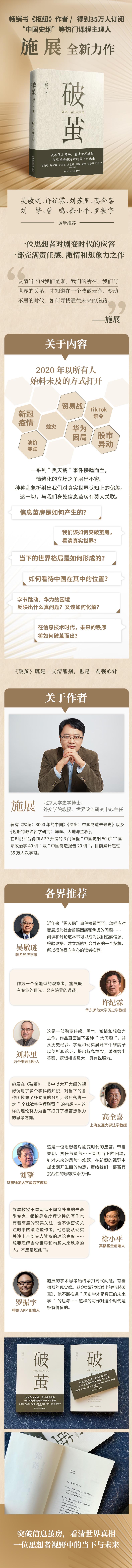 2. 学界、商界专家联袂推荐:经济学家吴敬琏、华东师范大学历史学教授许纪霖、华东师范大学政治学教授刘擎、真格基金创始人徐小平、得到APP创始人罗振宇、阿里巴巴前总参谋长曾鸣、万圣书园创始人刘苏里、上海交通大学法学教授高全喜 诚挚推荐!