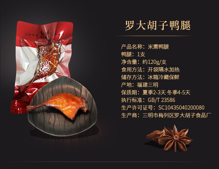 熏鸭之于三明,犹如烤鸭之于京城、烧鹅之于广州。“罗大胡子”熏鸭始创于1995年,是三明熏鸭创始品牌。