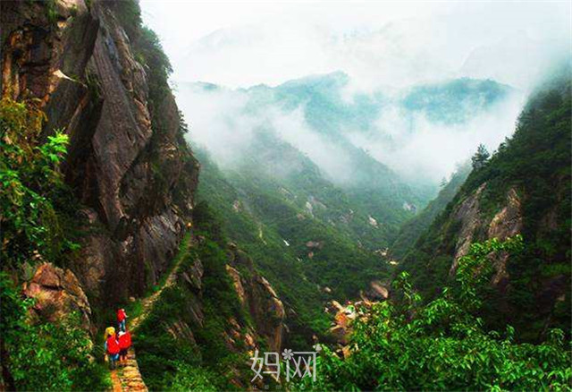 这是一段台阶上山的路,比较辛苦,没有爬黄山辛苦。但风景确实漂亮,有两条路,一条是古道,一条是新修栈道。栈道是过来玩玩就走的人步行的路。