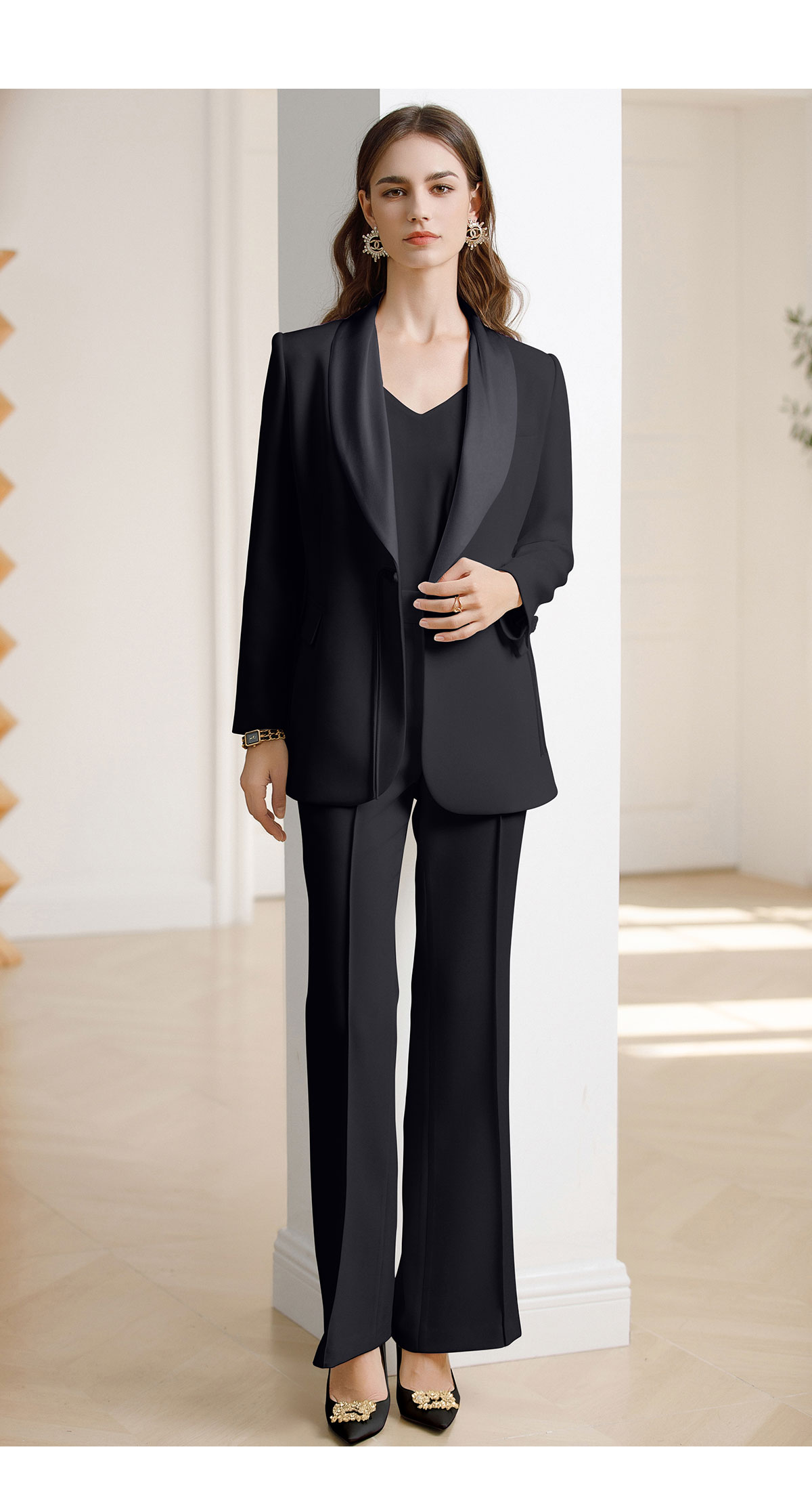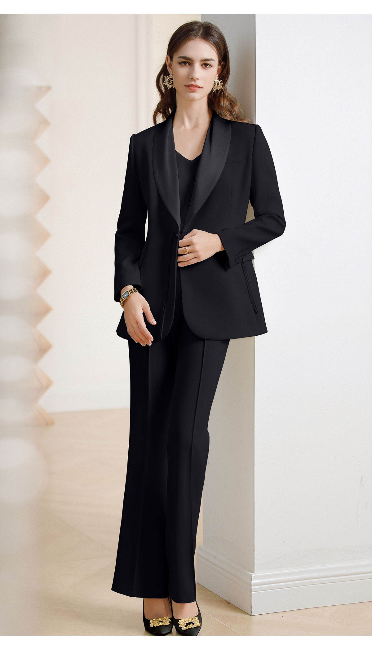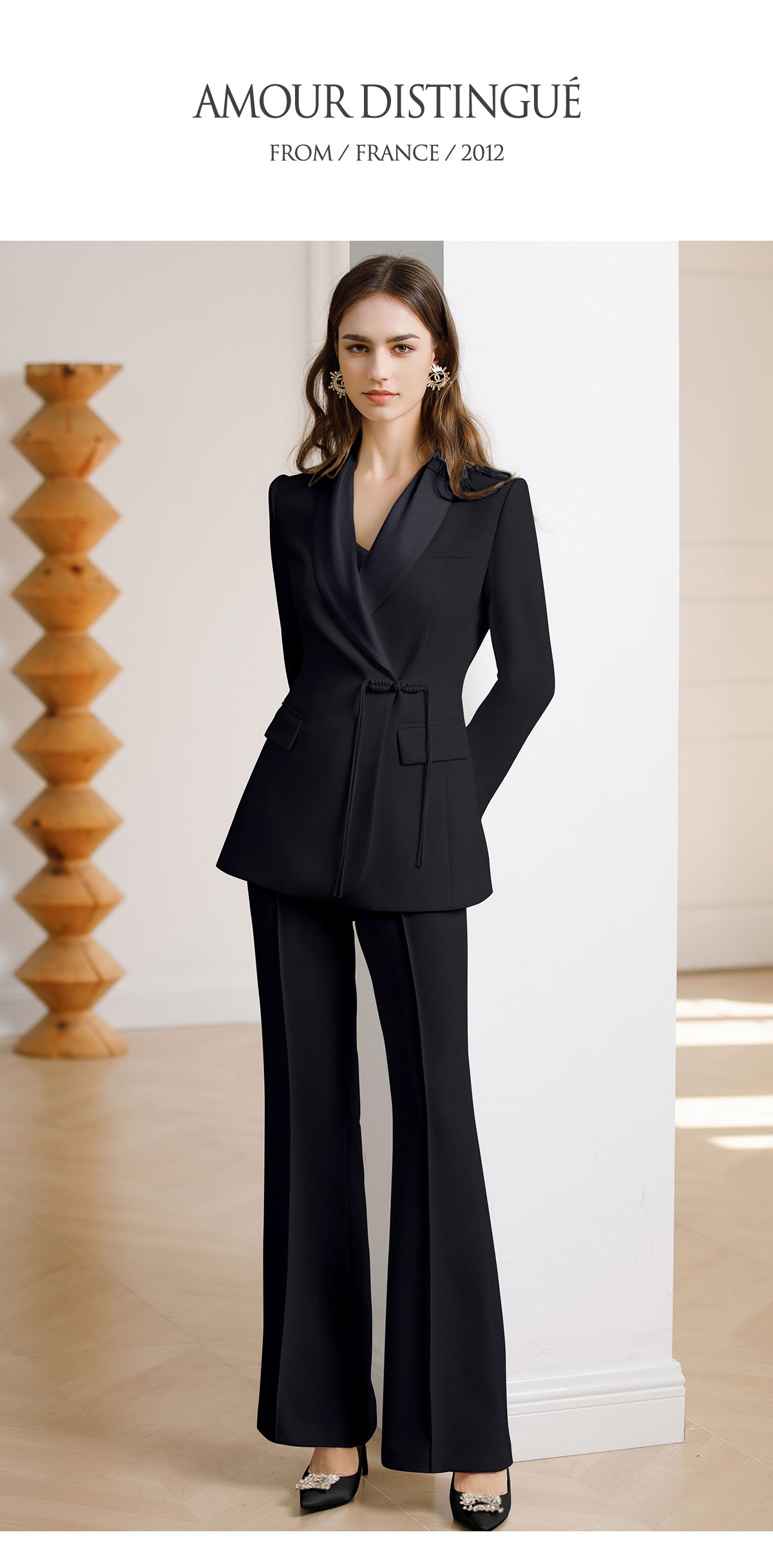 AD黑色西装套装女新中式盘扣职业装西服春季2024新款阔腿裤正装