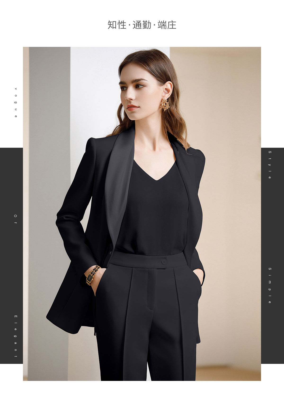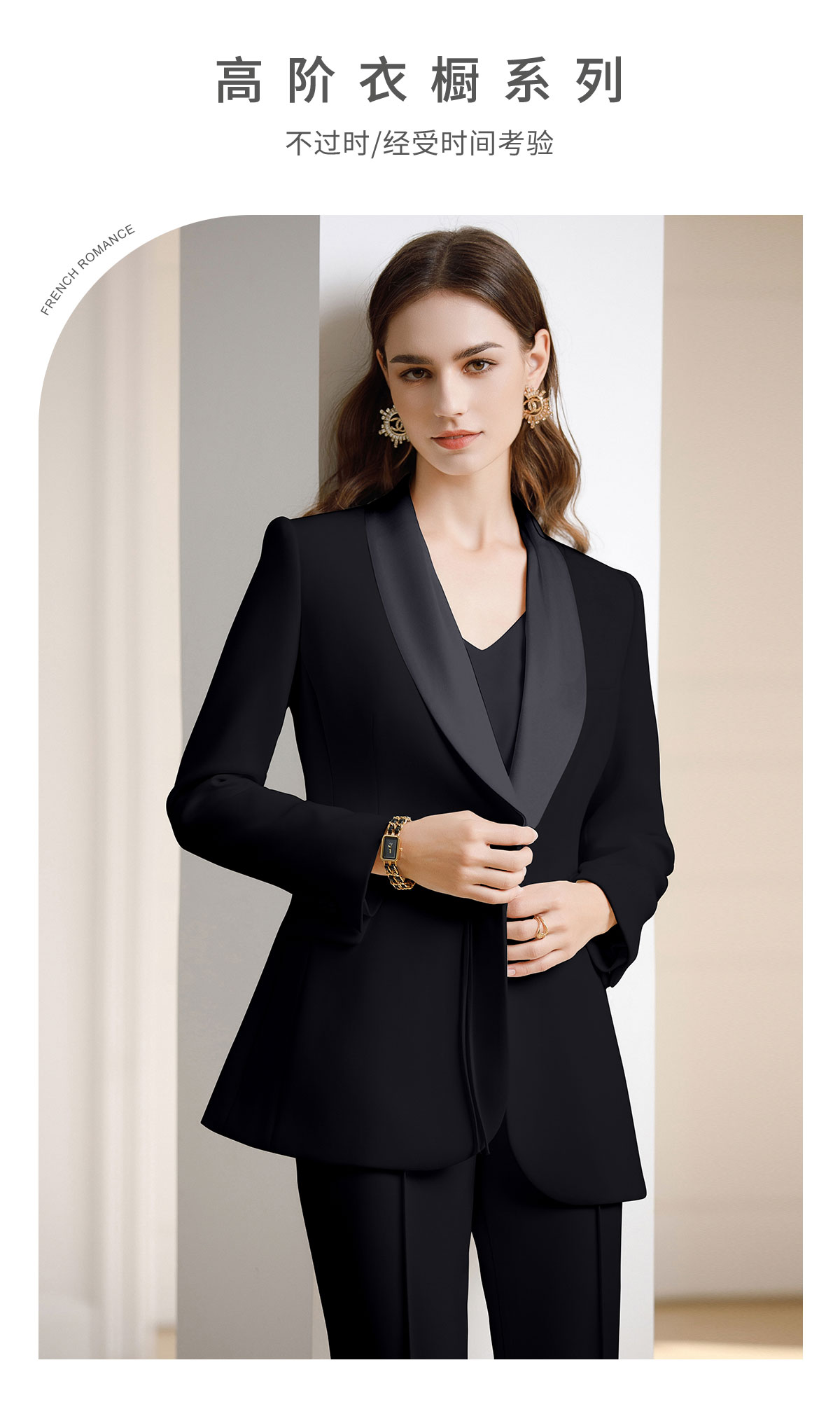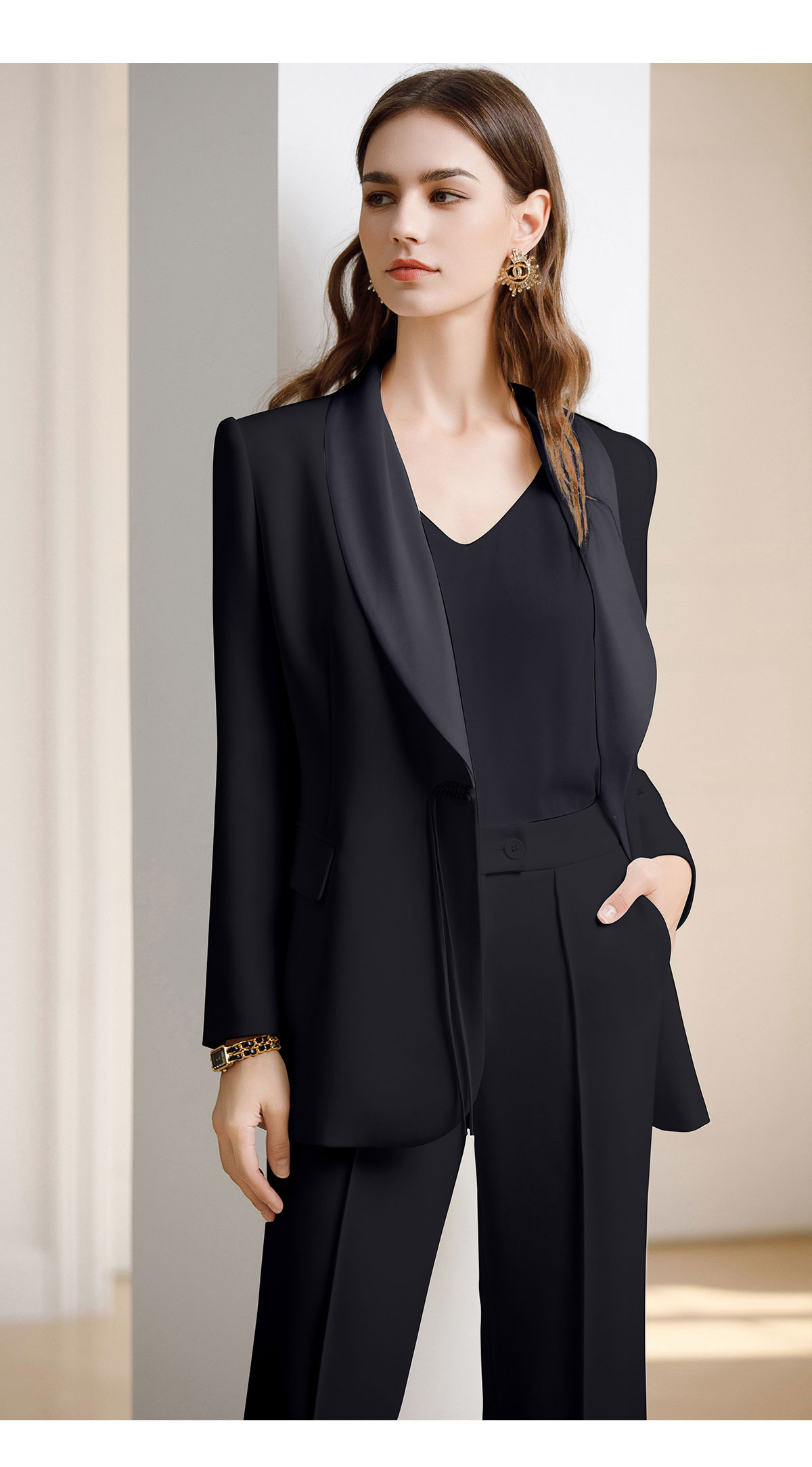 AD黑色西装套装女新中式盘扣职业装西服春季2024新款阔腿裤正装