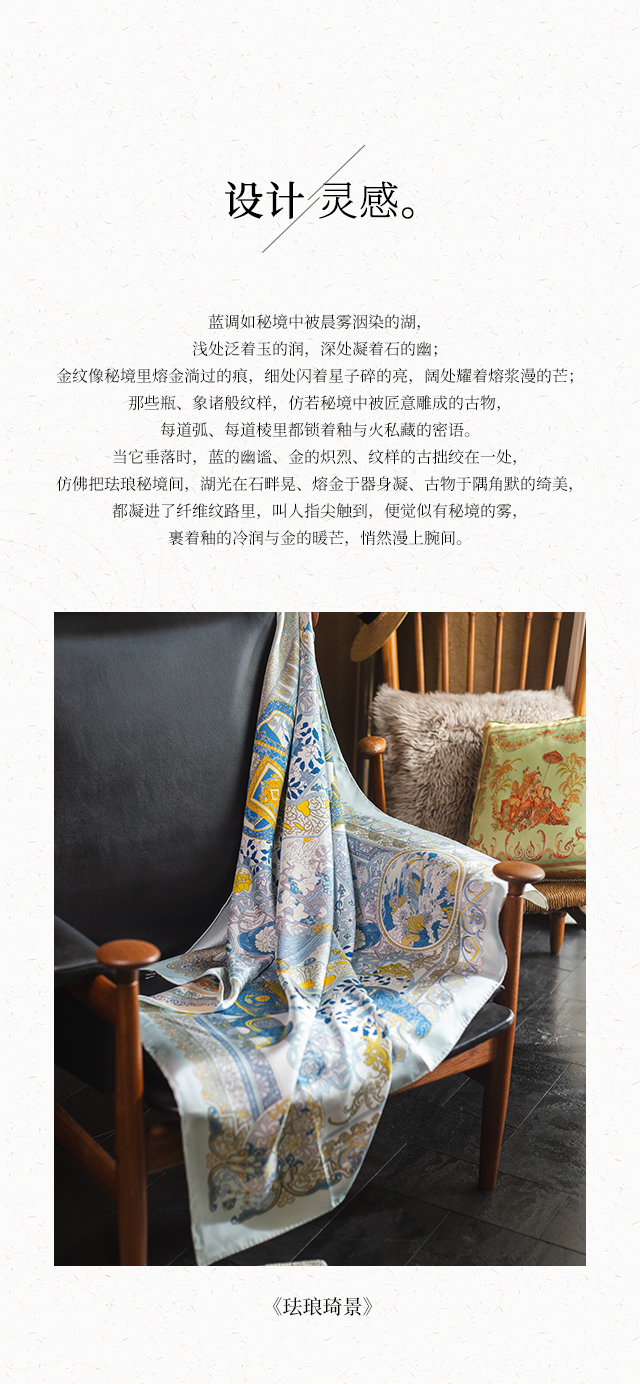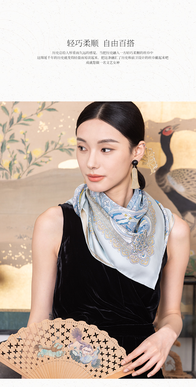 喜得宝文创丝巾《玉仪东方》良渚文化艺术数码长巾杭州丝绸100%桑蚕丝素绉缎