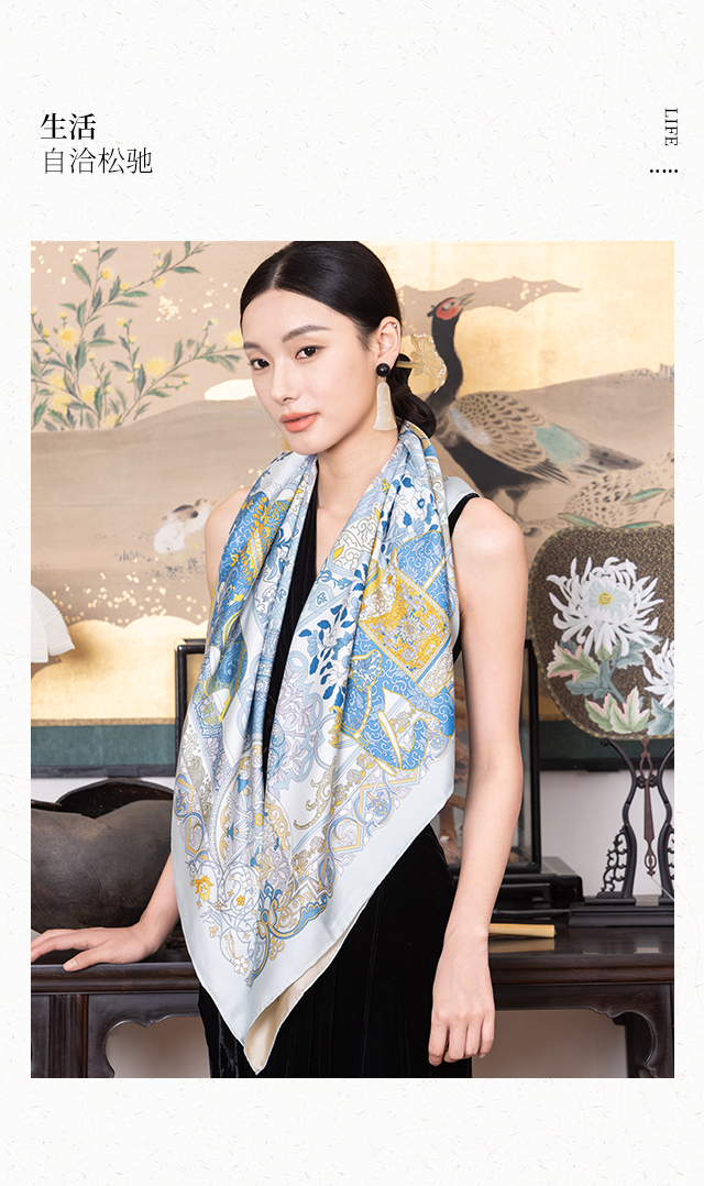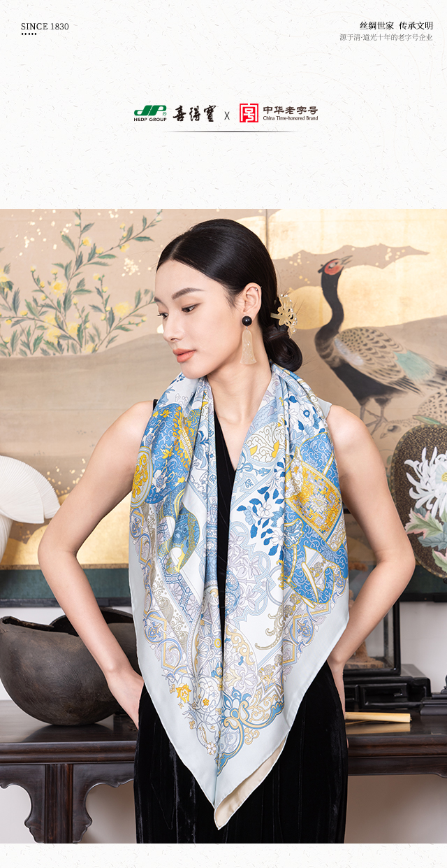 喜得宝文创丝巾《最杭州·十境流光·数码双面斜纹方巾》杭州丝绸100%桑蚕丝斜纹绸
