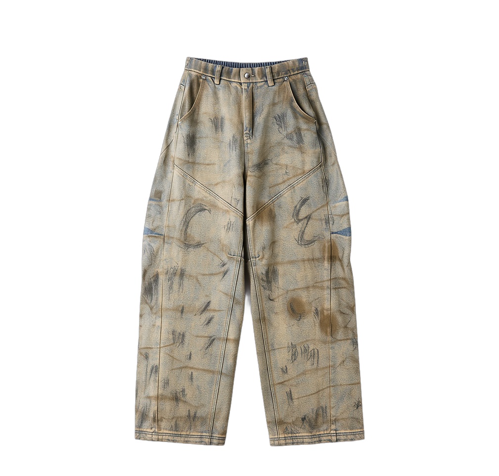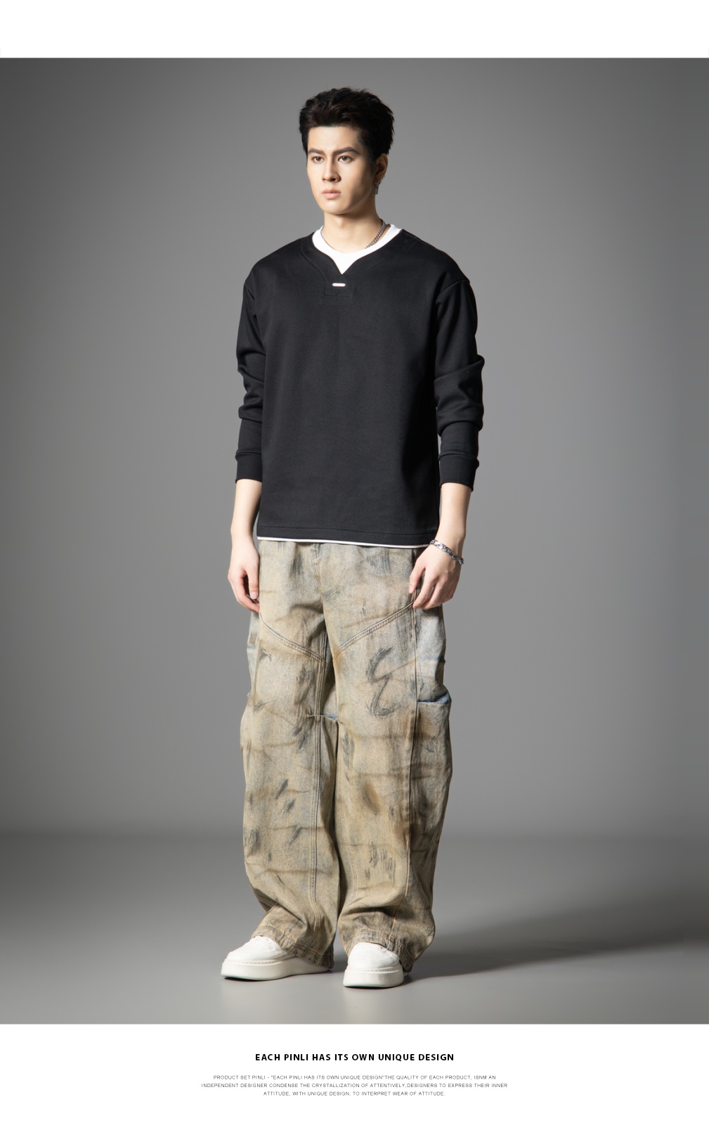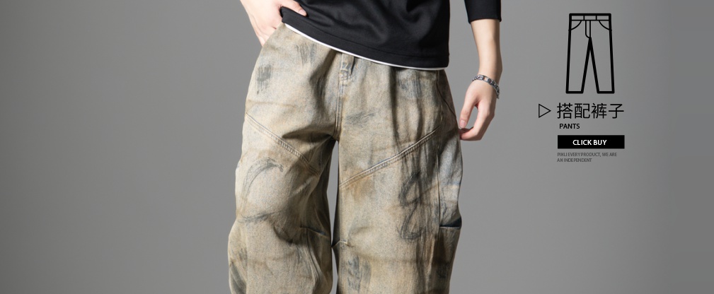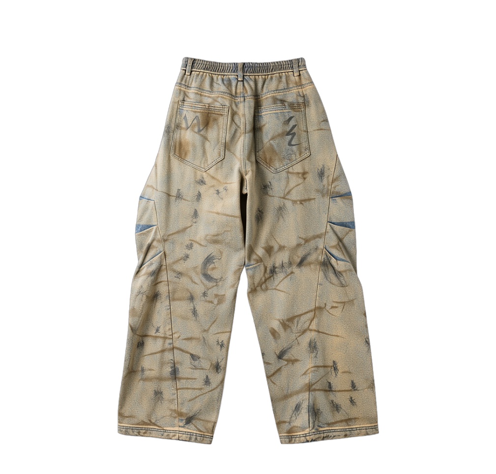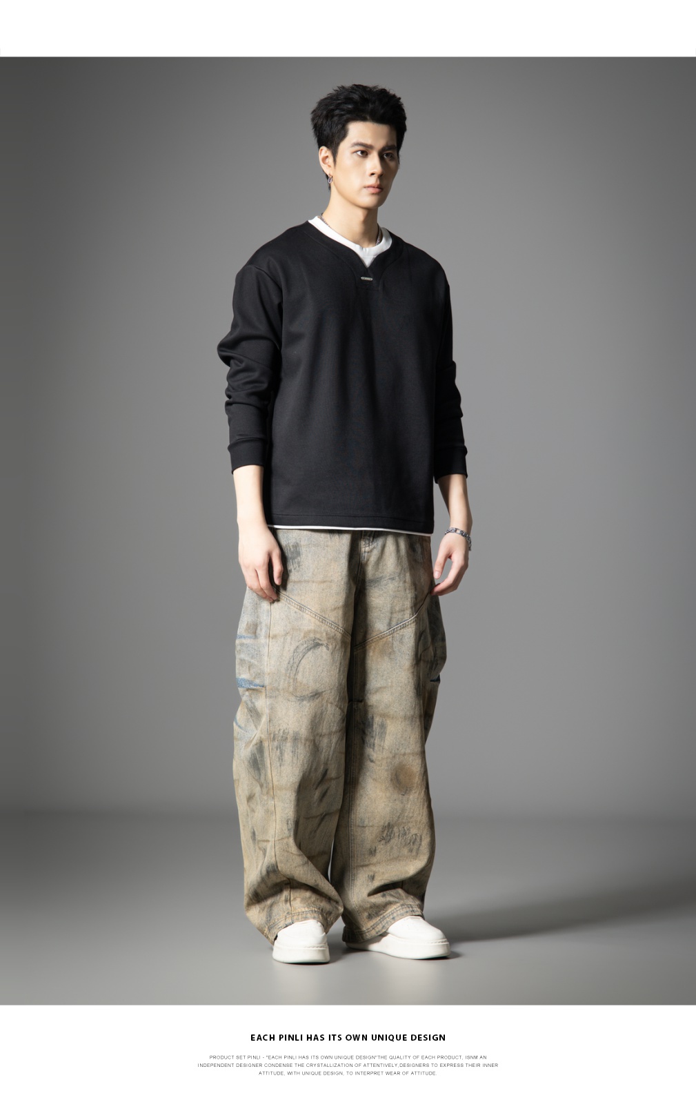 PINLI品立2025秋季新款涂鸦印花嘻哈街头宽松直筒休闲牛仔长裤男GD253116145