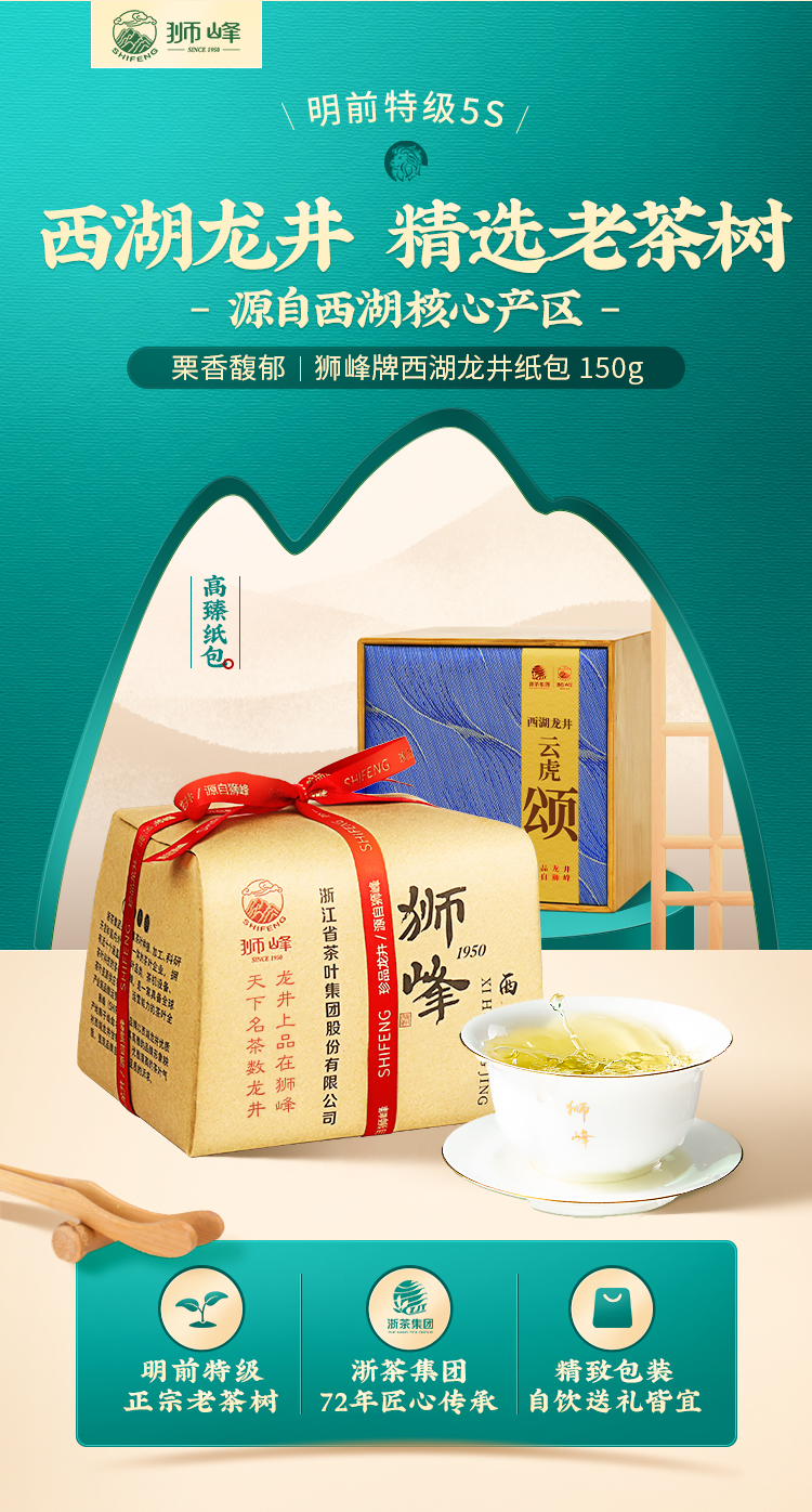 【2026年新茶】狮峰丨颂/沁 字传统纸包装 西湖龙井 绿茶 明前特级 250g