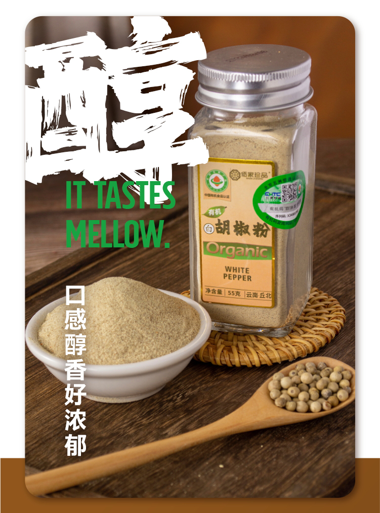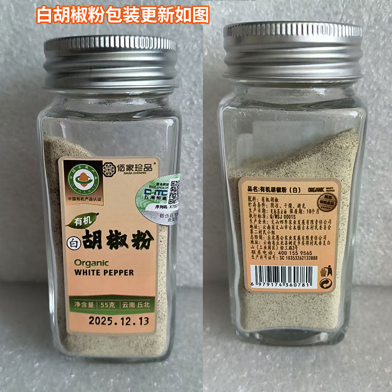 云南调料有机白胡椒粉55g蘸料撒料烧烤炖汤调味香辛料家用瓶装牛排调味料包邮