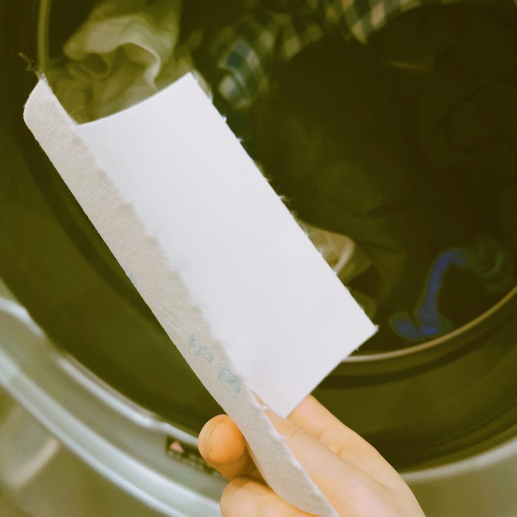 洗完之后衣服也是非常高级的香味,因为它添加了植物精华让衣物更柔顺清香。它还有护色的作用,通常的洗衣片都会完全溶解在水里,但是范耐斯洗衣片有两层设计(获得国家专利);1层洗衣片1层吸色布,达到洗衣护色同步的效果,你们看我洗完出来的这张纸,有吸附颜色哦!它独有吸色纤维及吸色非织造布的专利技术,洗衣片织造的蜂窝结构能吸附水中的游离色素,不吸附衣服原本色彩,所以保证在避免衣服相互串色的同时,让衣物颜色更加持久!