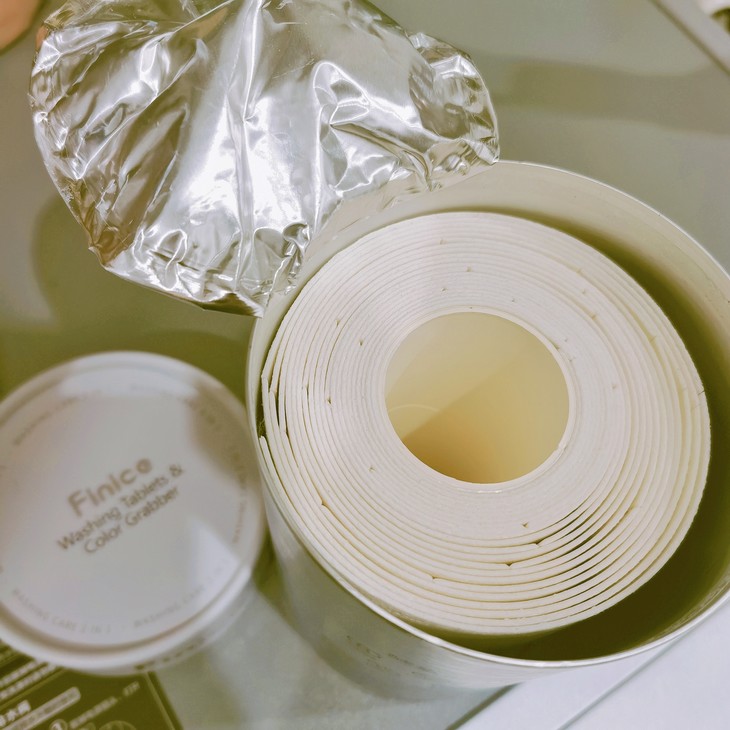 用法也是简单,跟卷纸一样,每次撕一张丢洗衣机里就好,薄薄一片可以洗3-7Kg衣物(6-12件),如果衣服较少,可以剪裁成小块使用,一卷30片也可以用蛮久了!