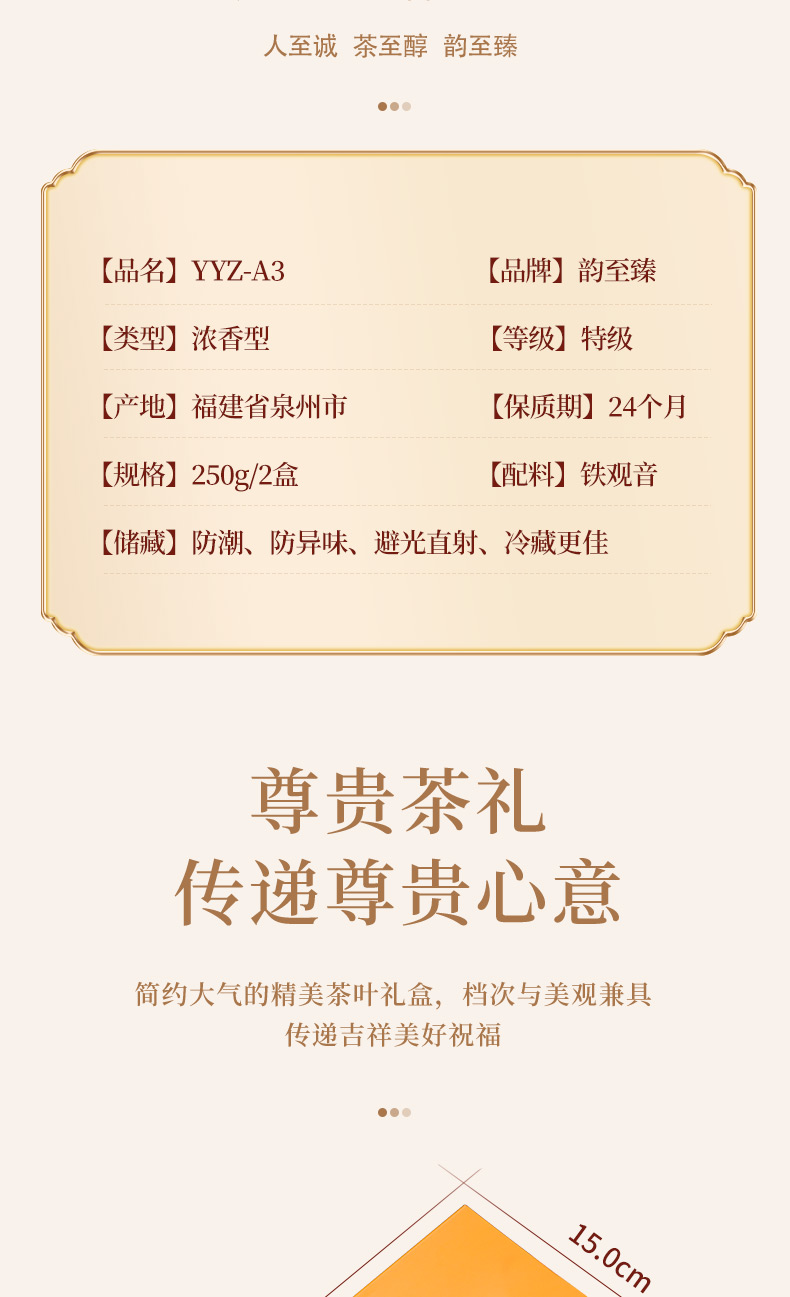 【A3】韵至臻浓香型铁观音YZZ-A3 250g/2盒送手提袋一个