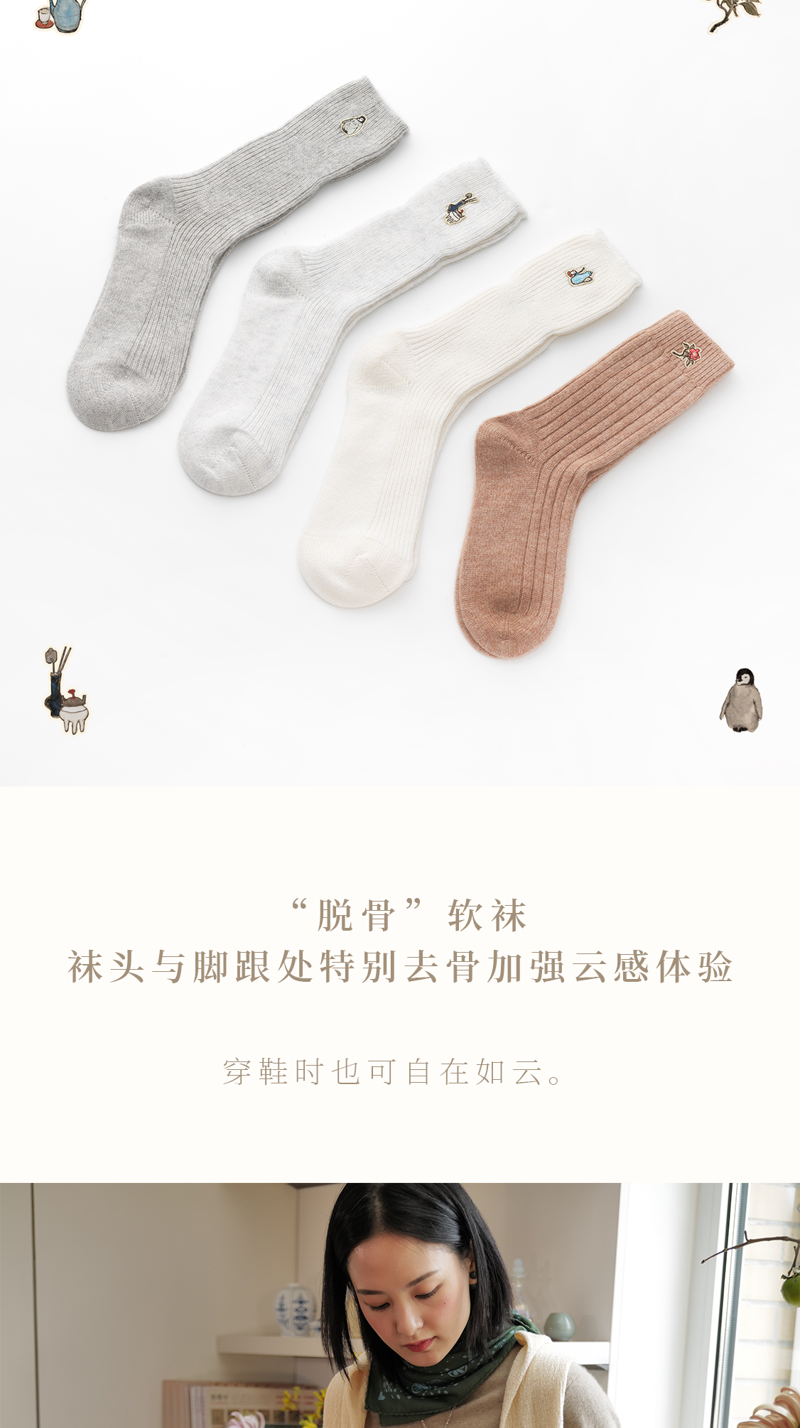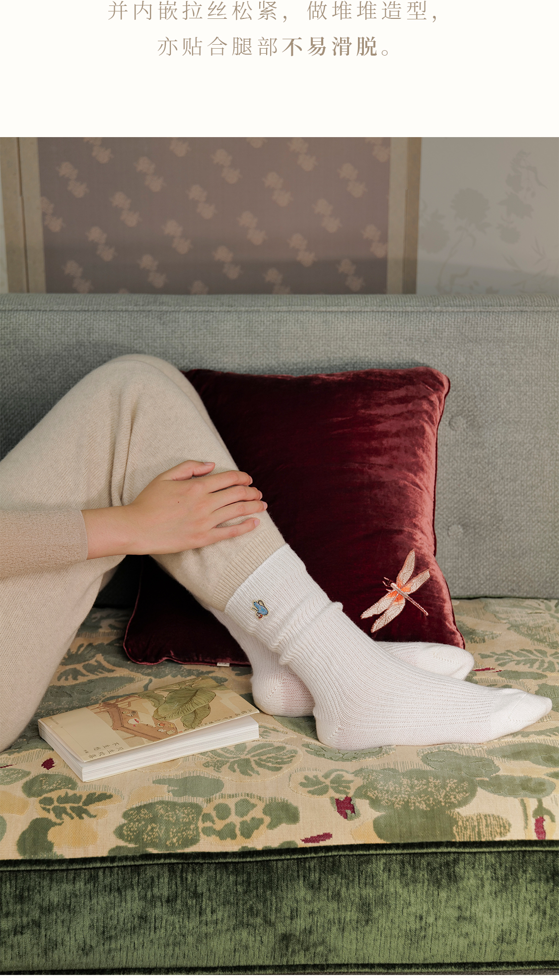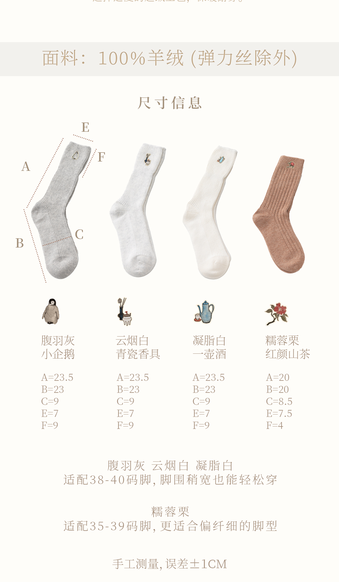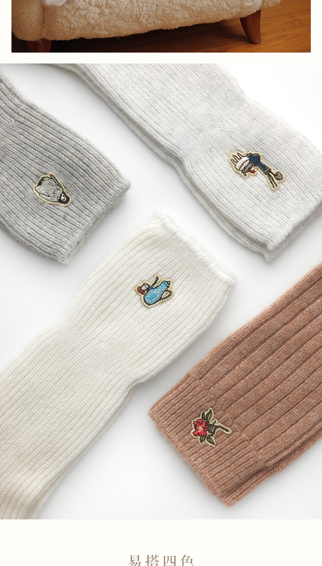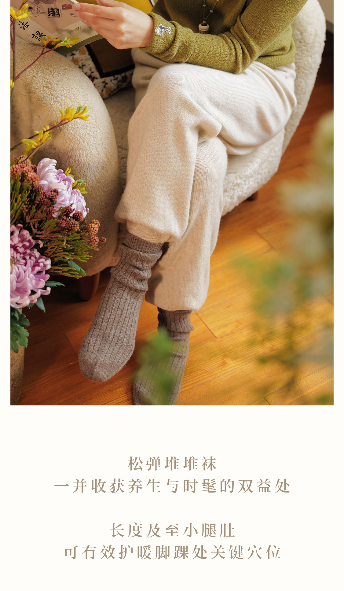 暖袜 100%山羊绒提花 可爱饰绣 松软无骨中筒袜 堆堆袜 山林曦照