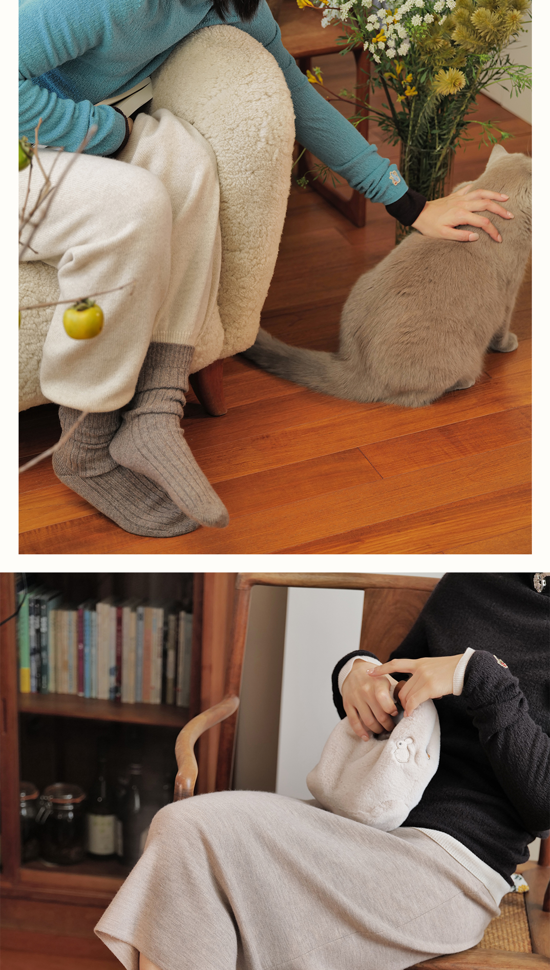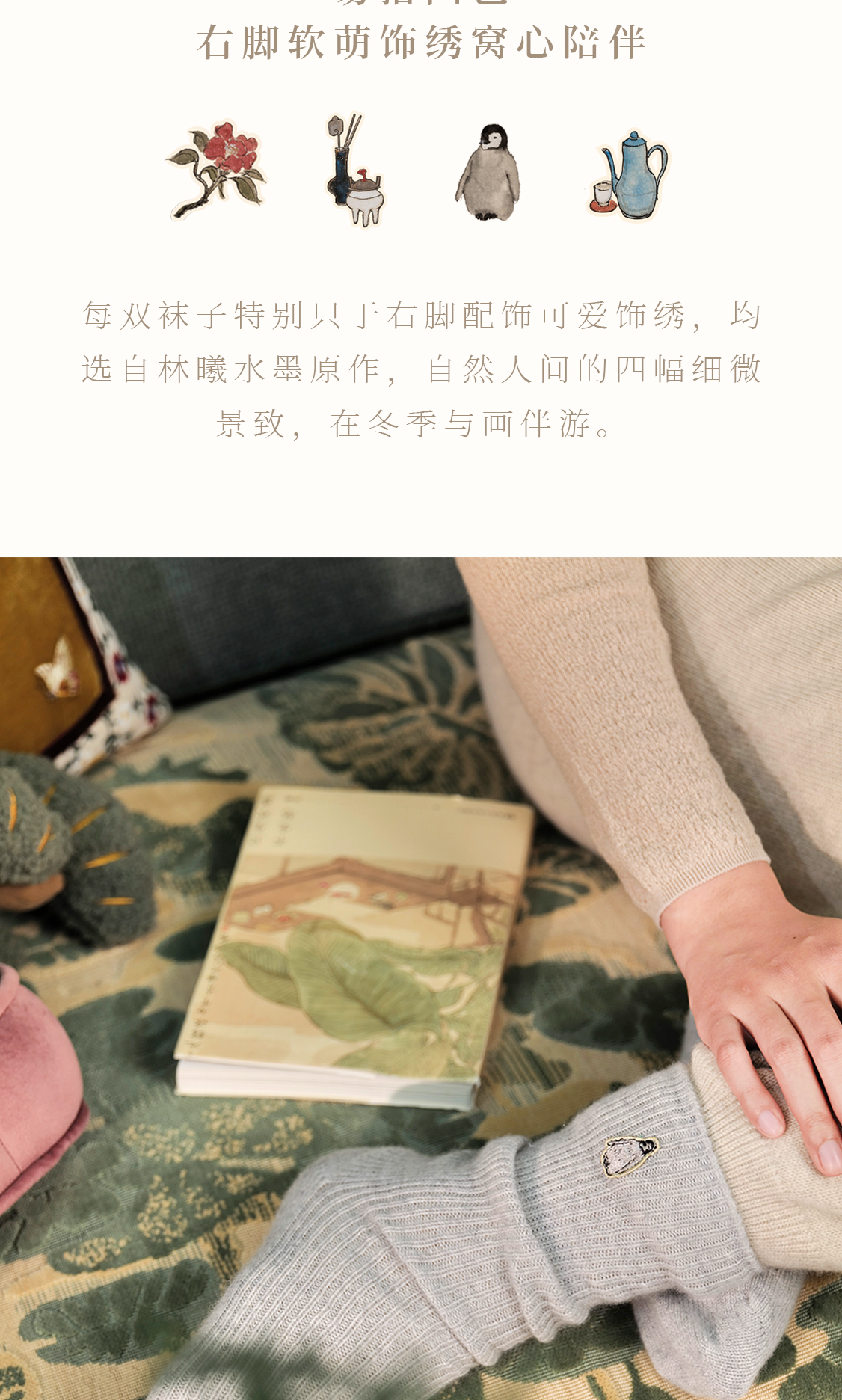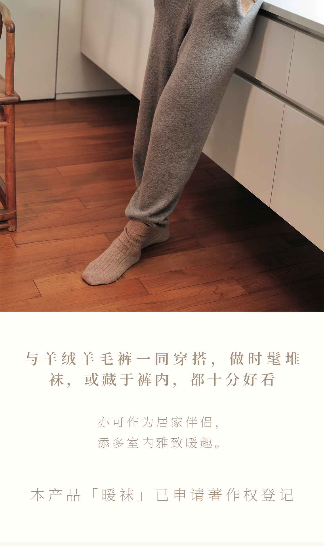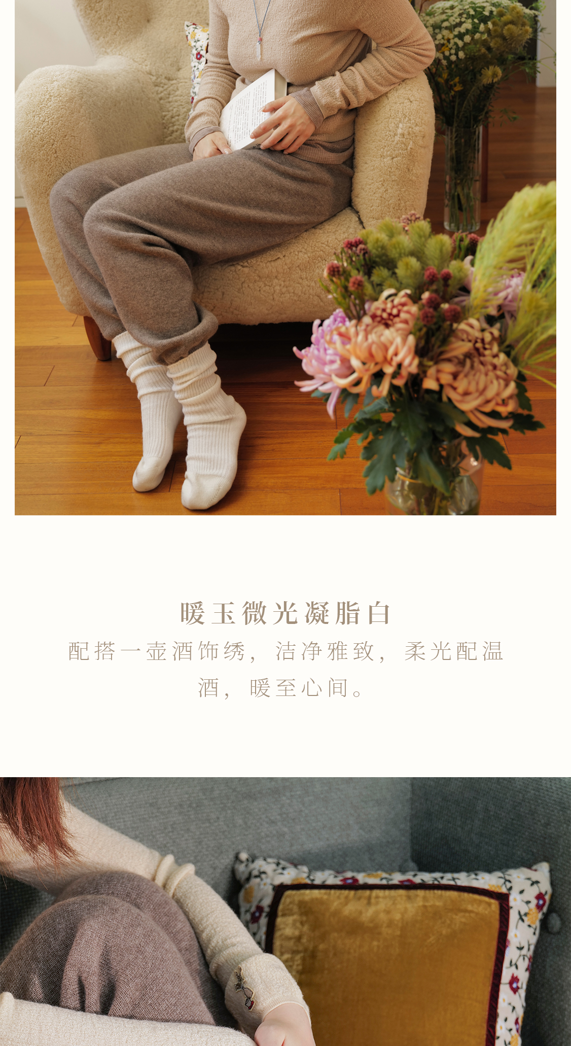 暖袜 100%山羊绒提花 可爱饰绣 松软无骨中筒袜 堆堆袜 山林曦照