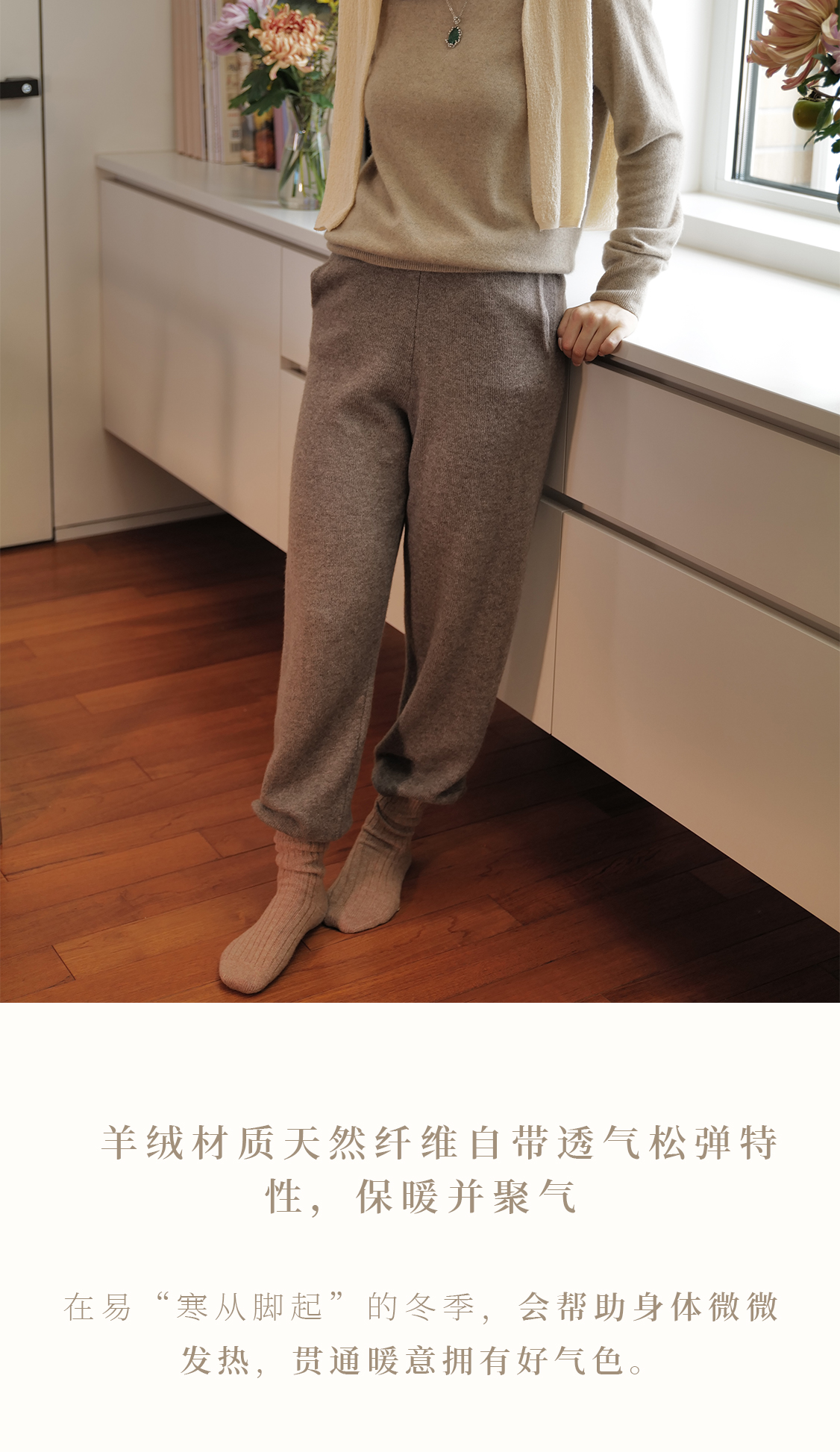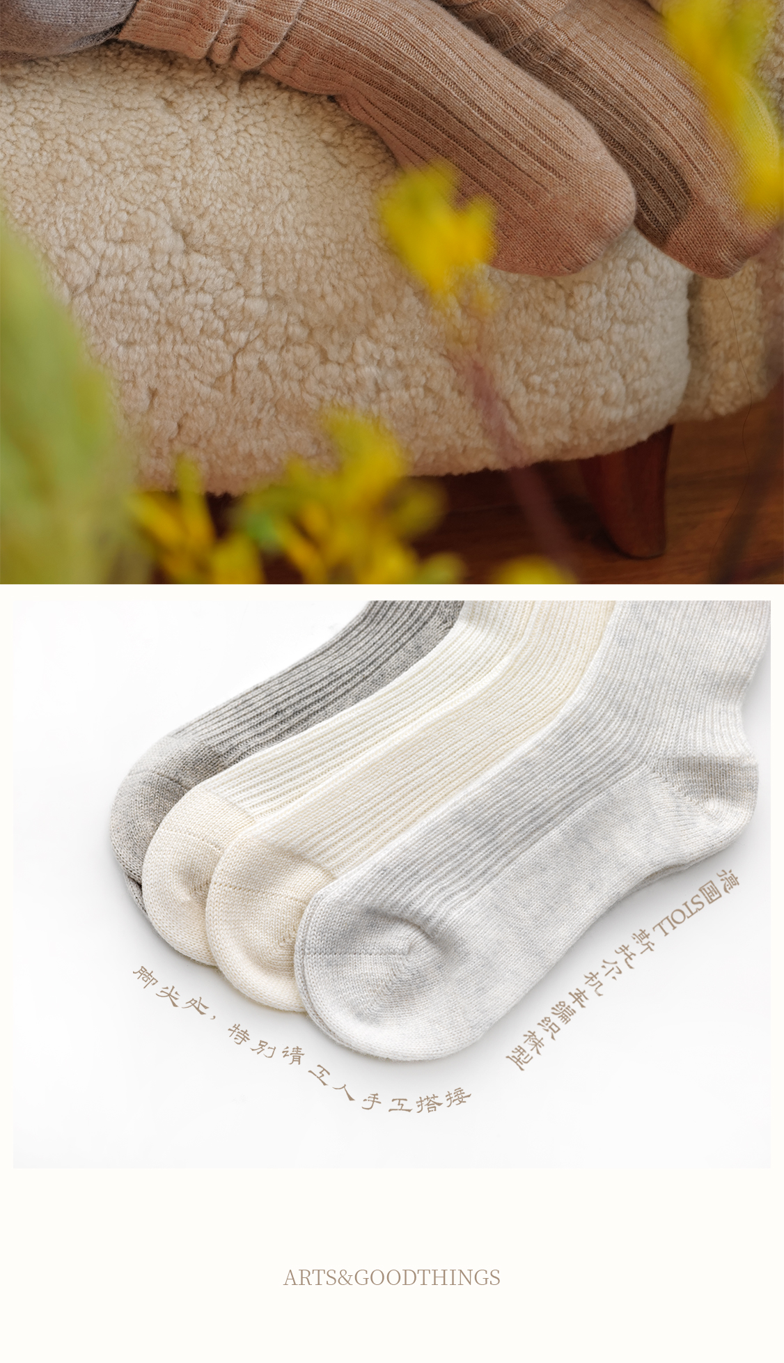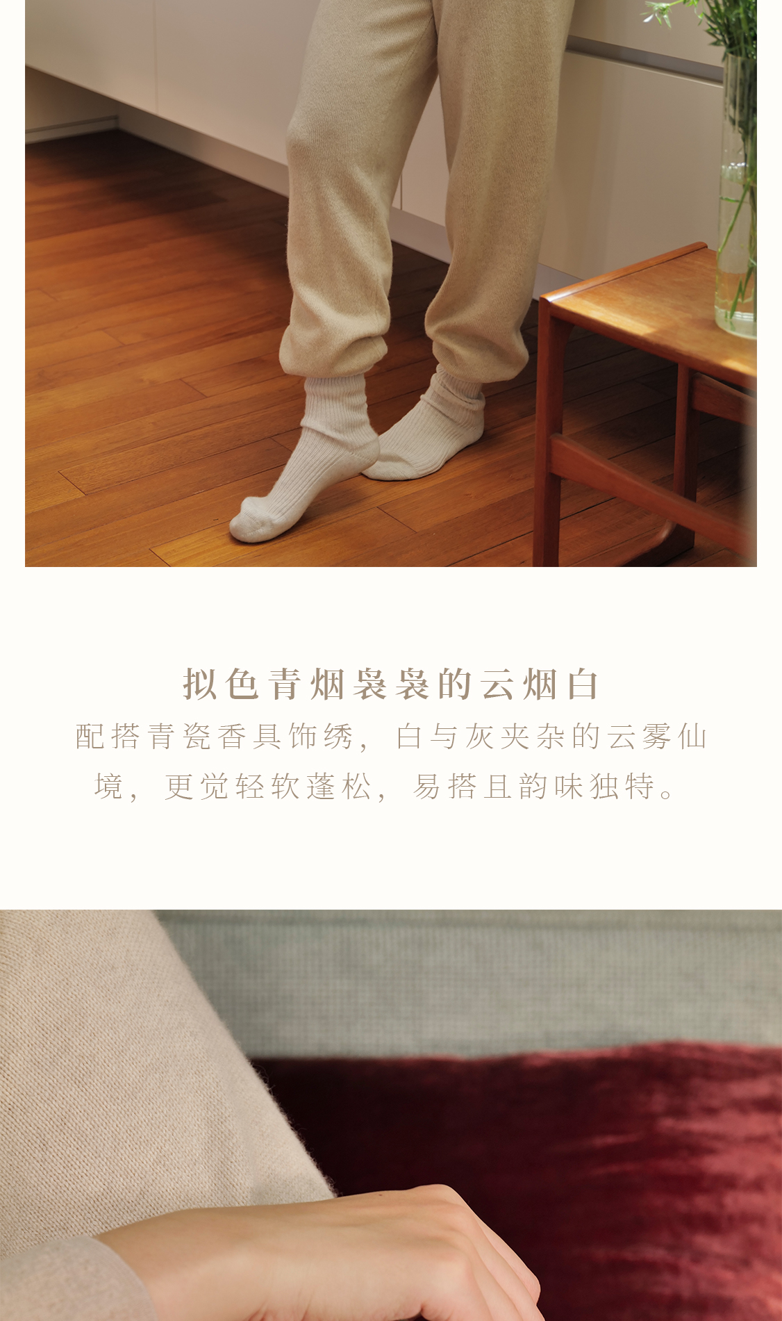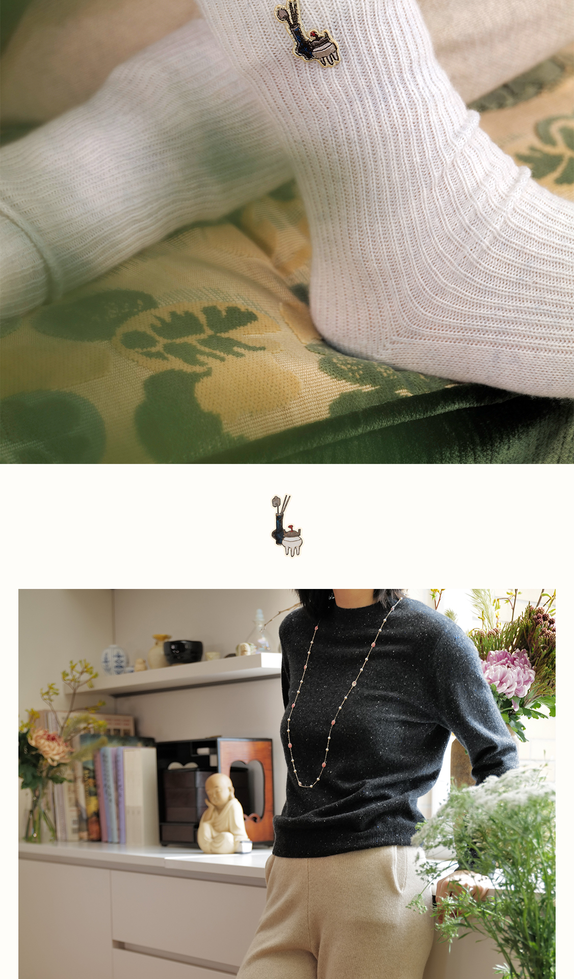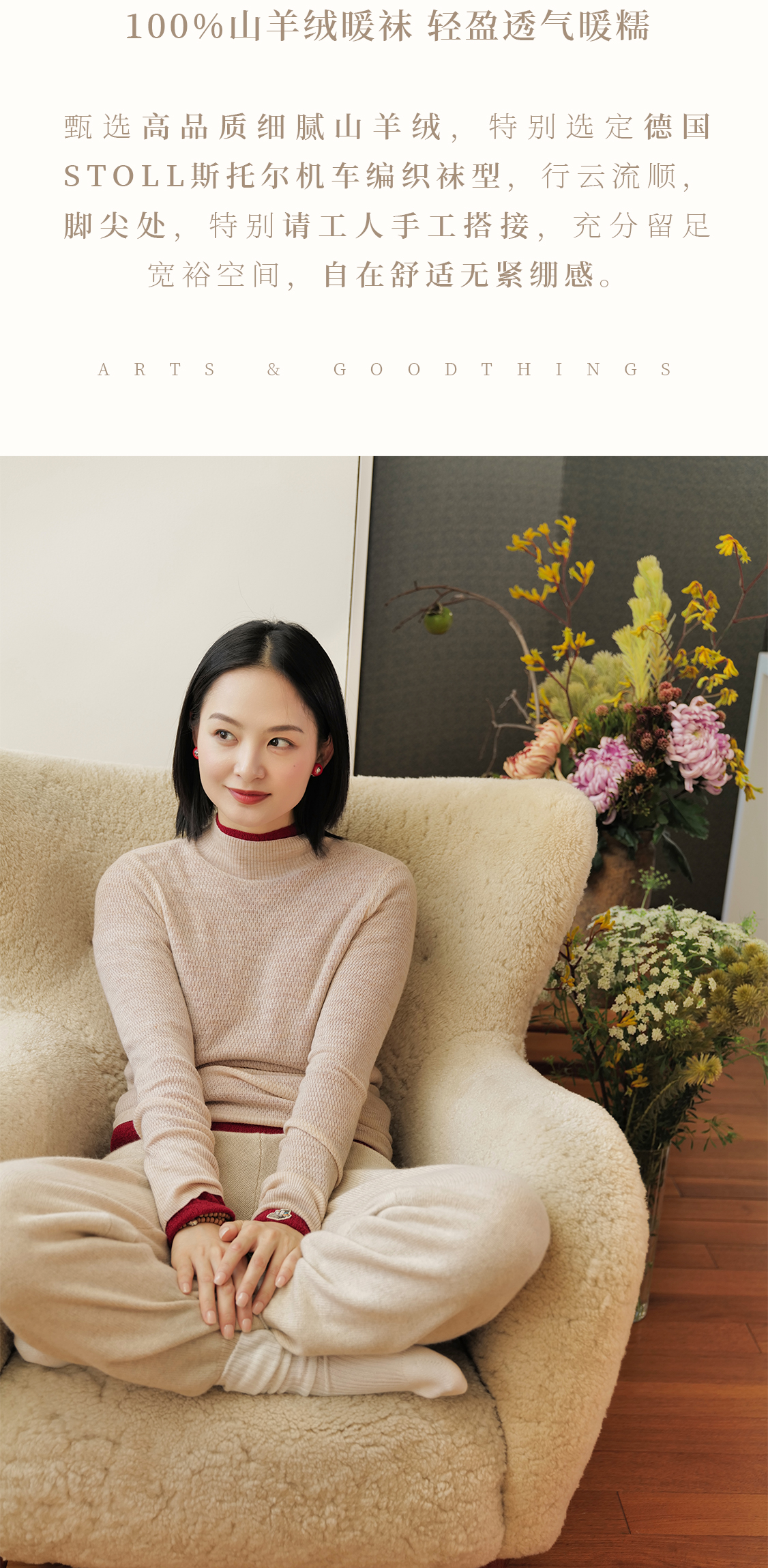暖袜 100%山羊绒提花 可爱饰绣 松软无骨中筒袜 堆堆袜 山林曦照