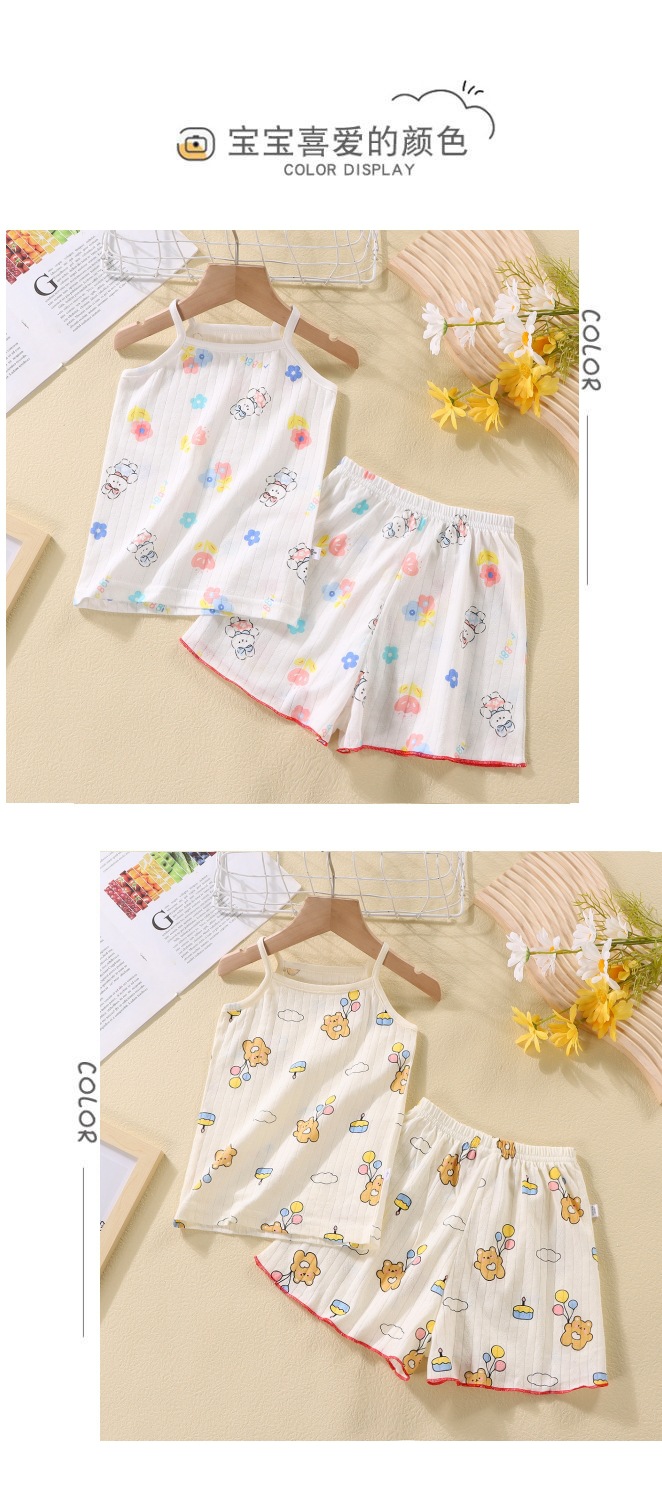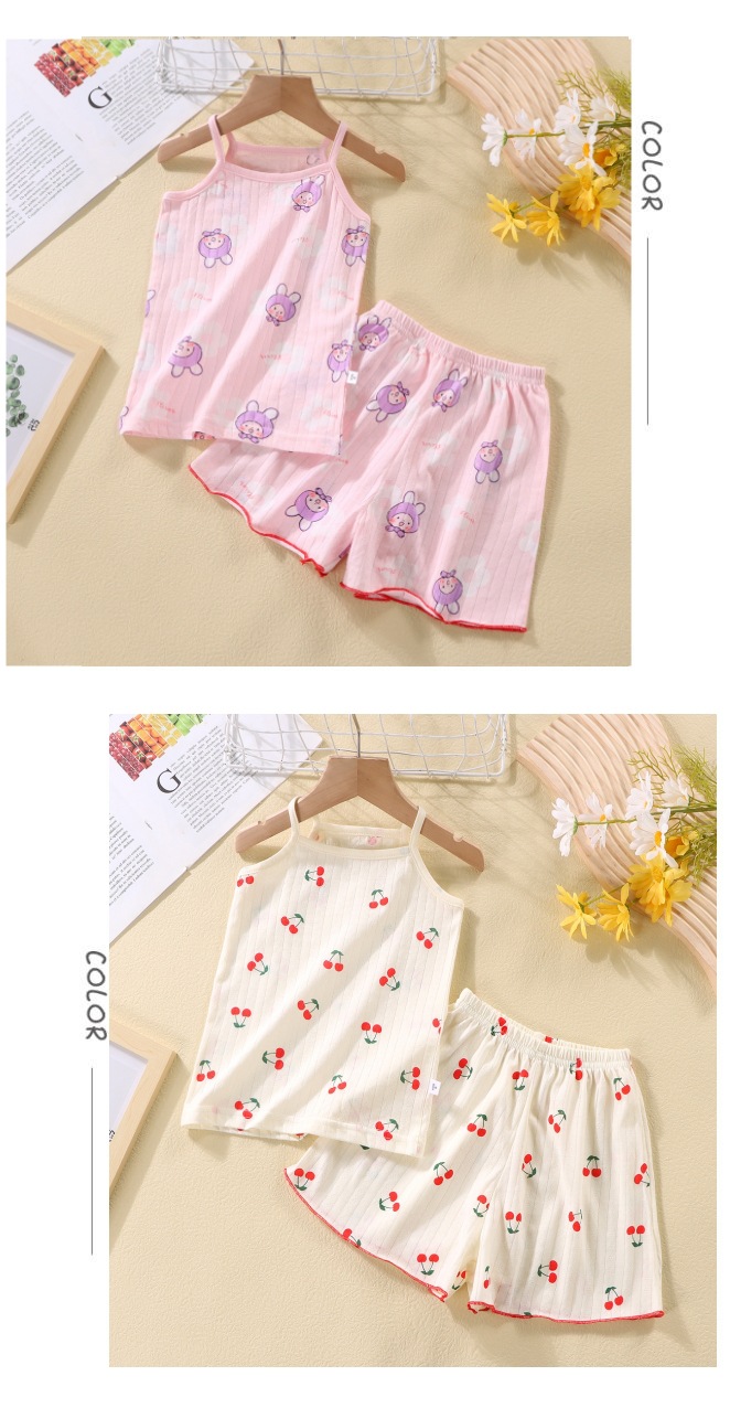 儿童吊带裤裙套装夏季女童全棉睡衣家居服吸汗背心短裙宝宝空调服
