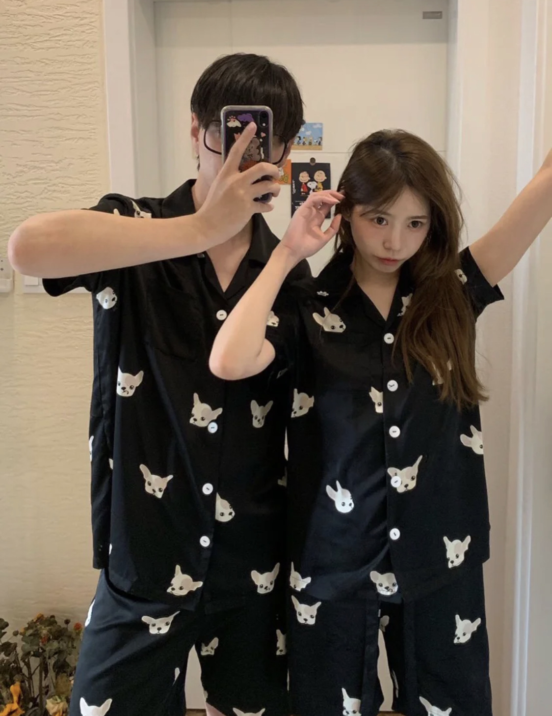 MOMMY KIKO 法兰绒家居服套装 法兰绒熊猫嘭嘭/满印狗