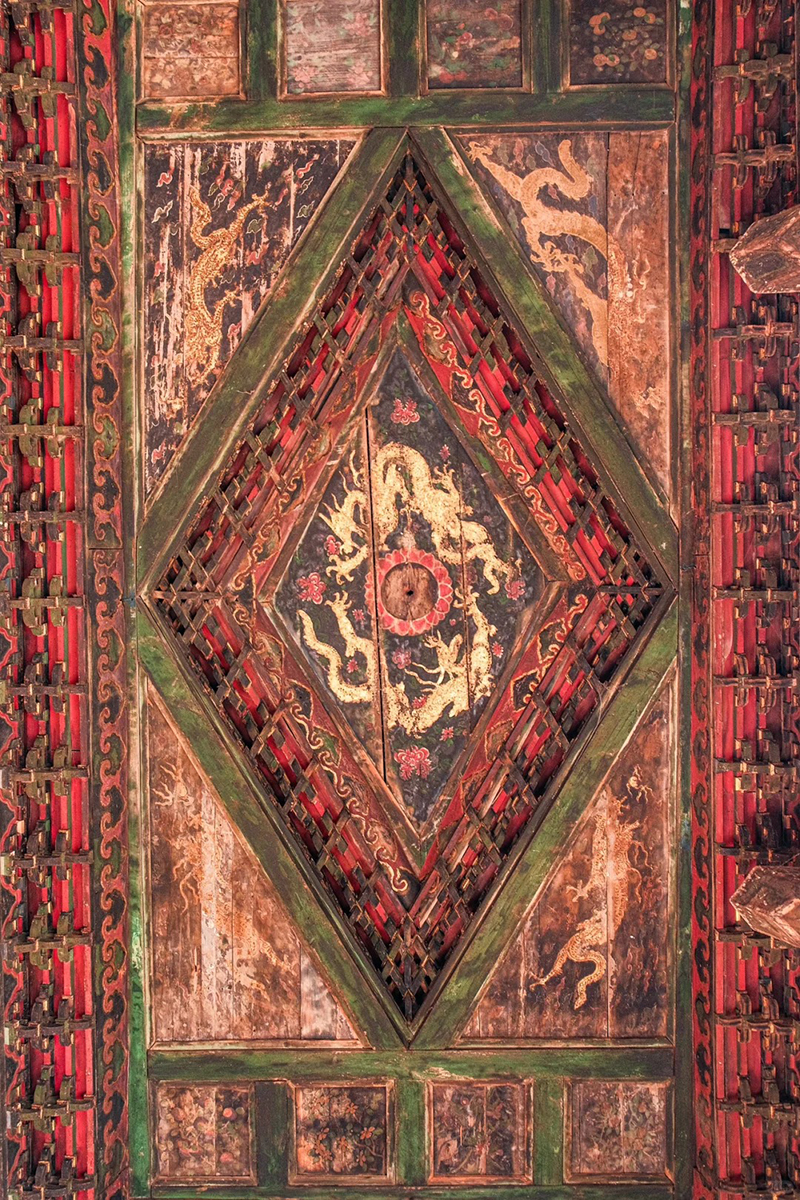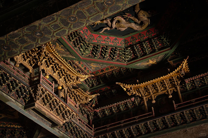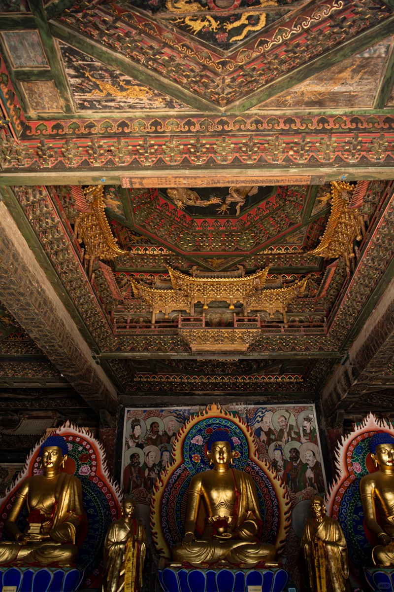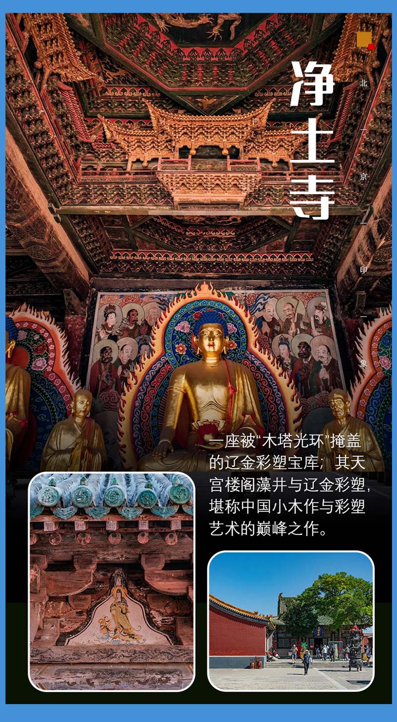 - 之后前往【净土寺】看天宫藻井,金代古建梁思成考察应县时,大赞”应县有三宝”,其一是应县木塔,其二是净土寺的天宫楼阁藻井,其三为净土寺门前的一对"披头散发“石狮。净土寺主殿大雄宝殿为金代古建,大雄宝殿殿内藻井和天宫楼阁是大殿和净土寺的精华所在,采用的是《营造法式》中天宫楼阁的制作方法,构造精美、雕工精细,都是小木作的经典之作。仰头而望,你会禁不住连连赞叹!
