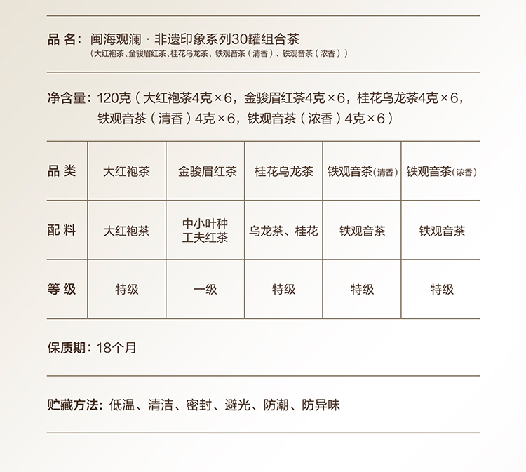 小罐茶 闽海观澜·非遗印象系列30罐组合茶(大红袍茶×6,金骏眉×6,桂花乌龙×6,铁观音茶(清香)×6,铁观音茶(浓香)×6) 送礼优选商务礼【现货】
