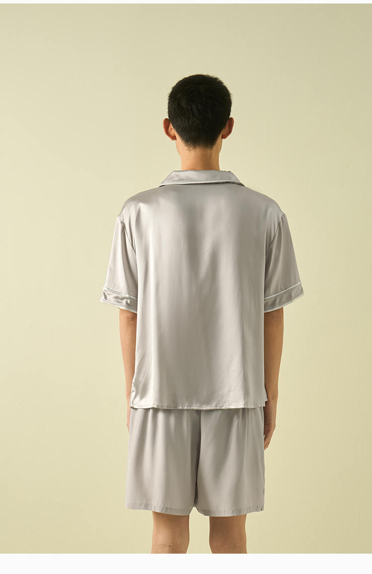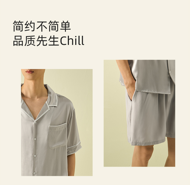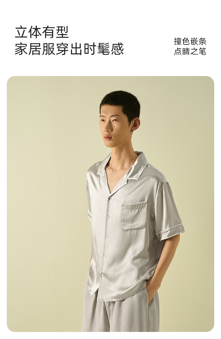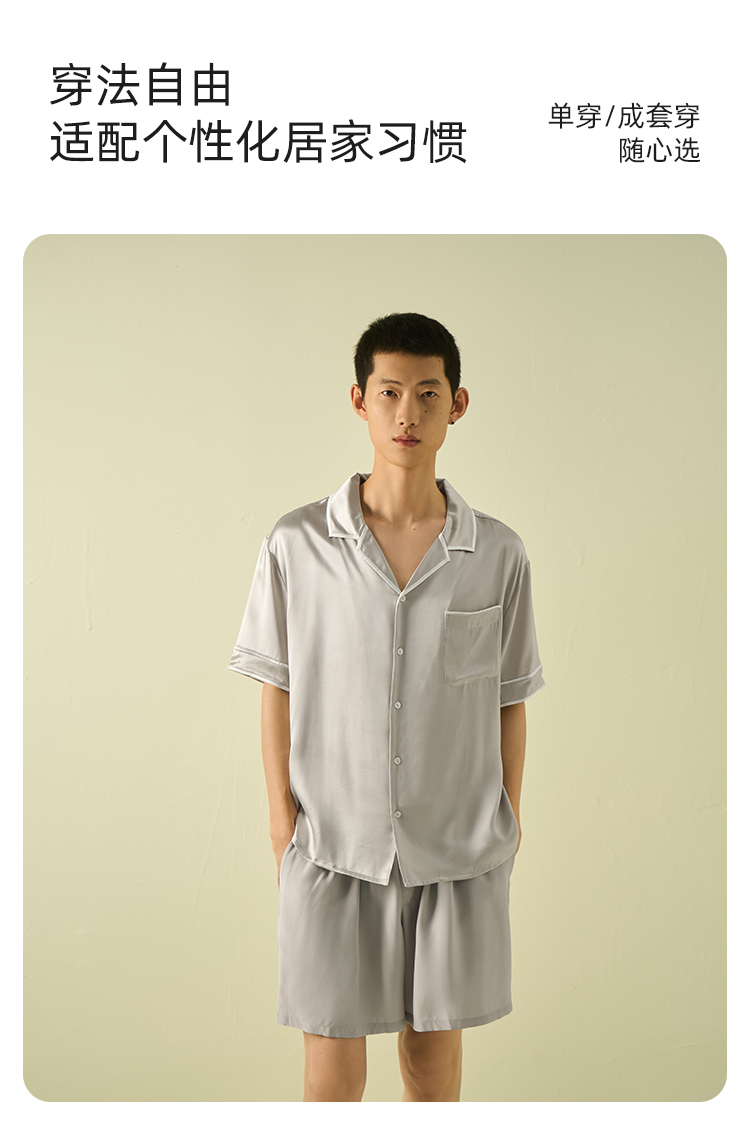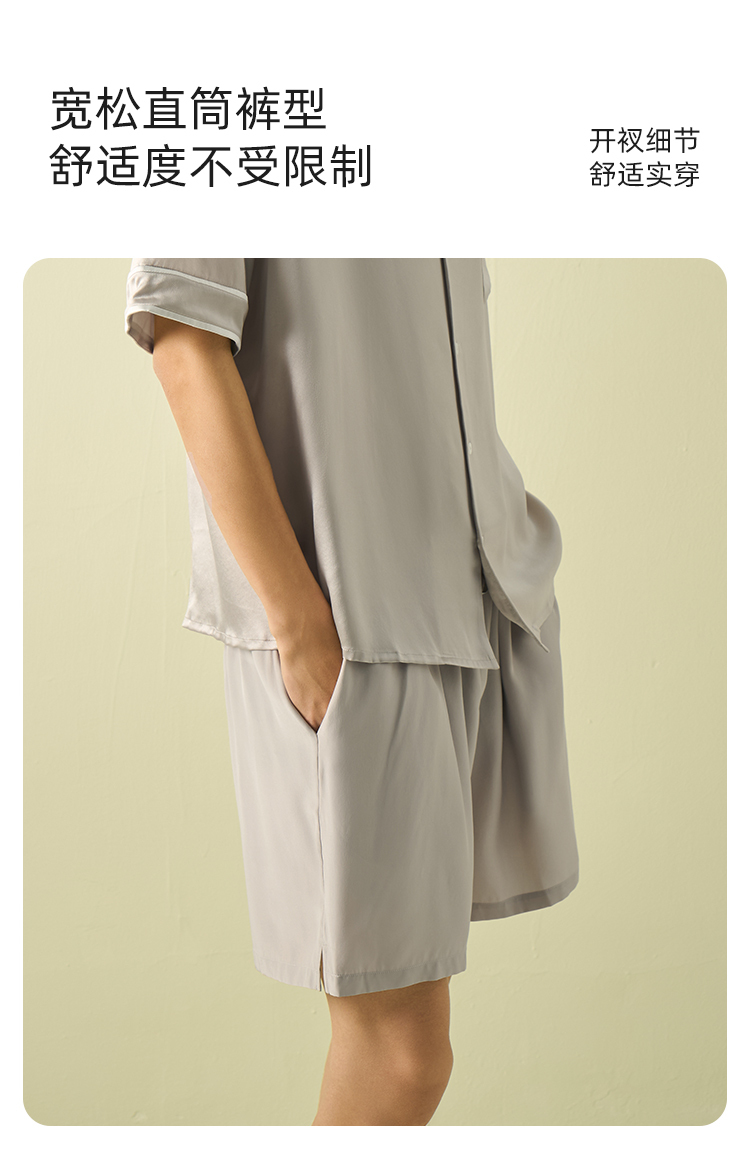 睡衣送男友』桑罗灰色翻领短袖套装男2025年春夏新品简约休闲