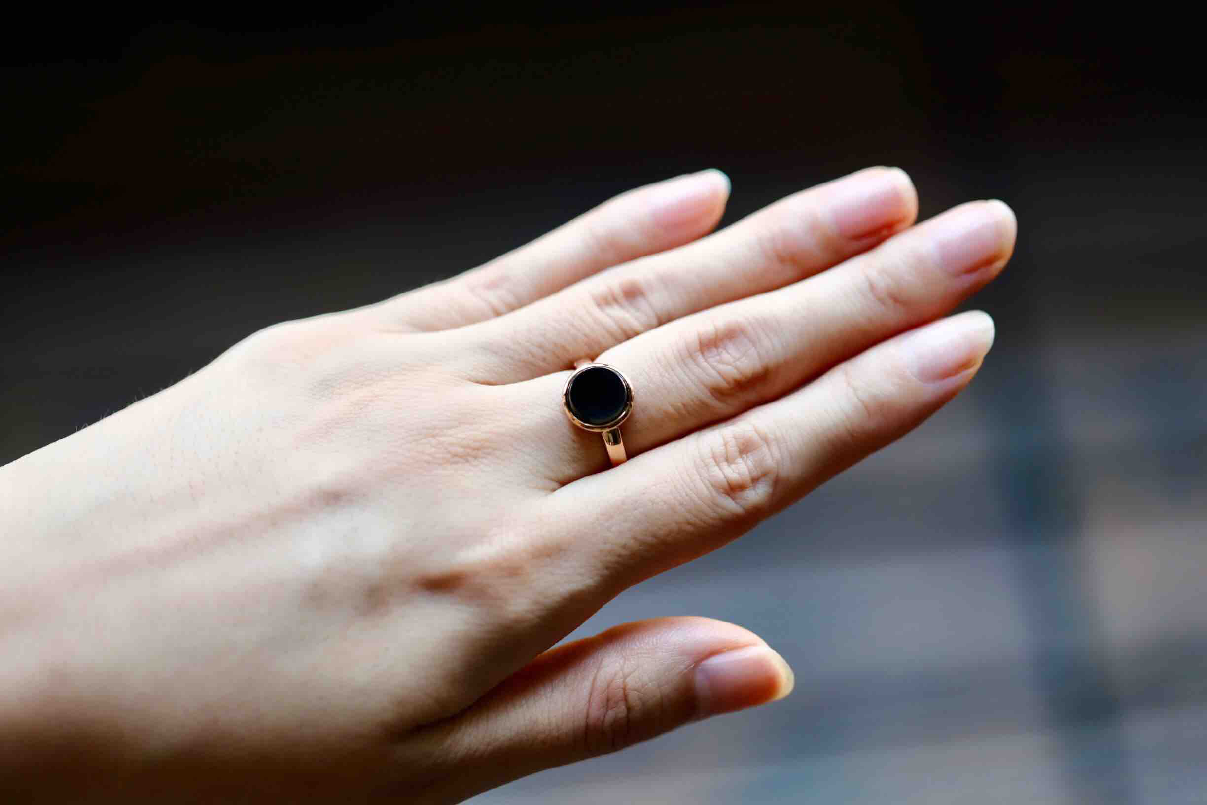 高冰种墨翠圆盘戒指18k玫瑰金镶嵌
